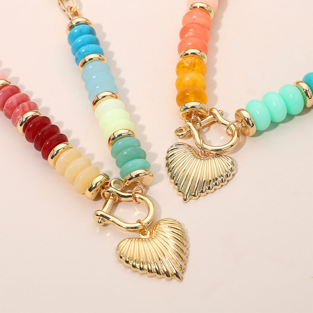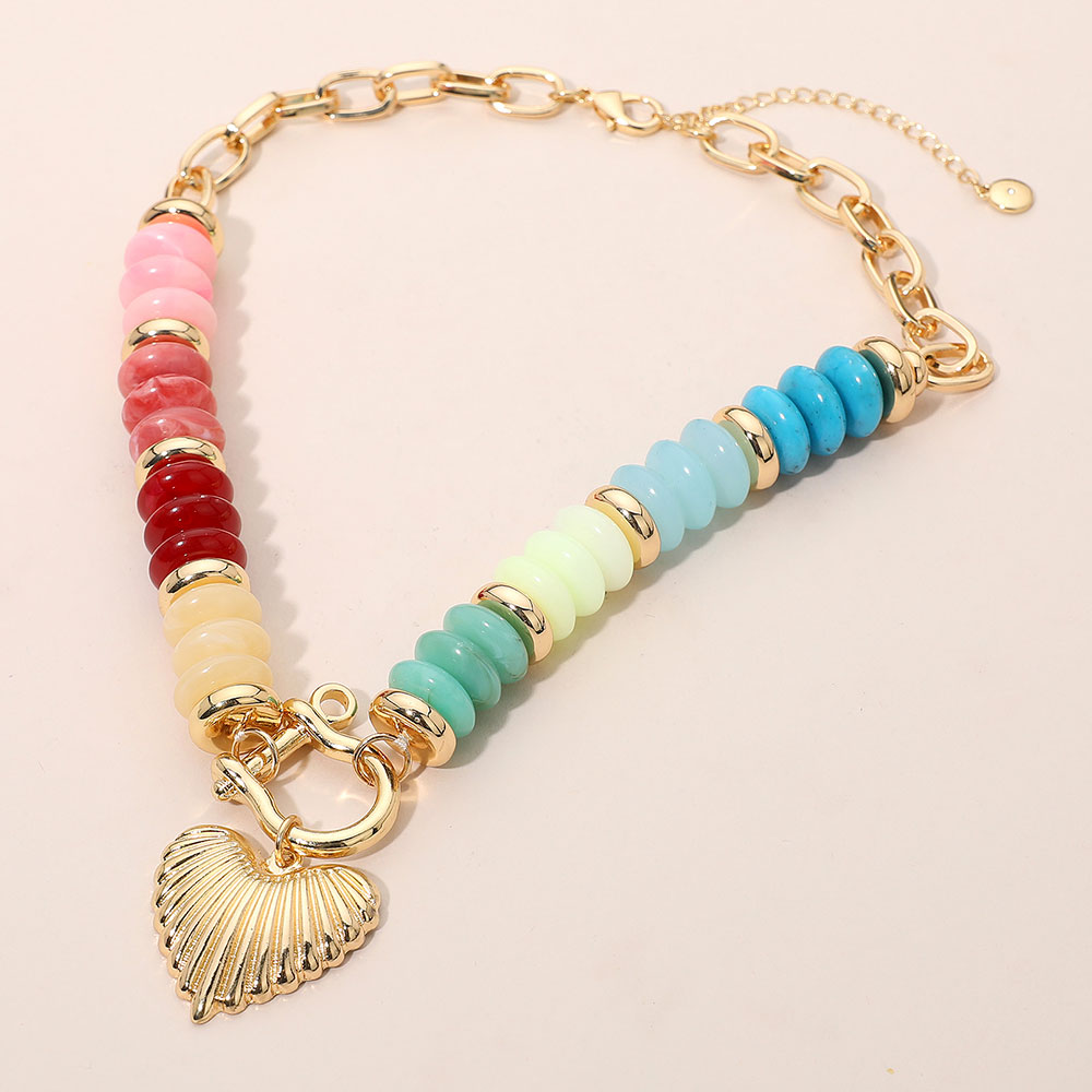 Details • Necklace Size : 17" + 3" L • Decor Size : 2" L • Add a touch of joy and sophistication with this multi-color bead heart pendant necklace. Featuring a radiant mix of tones and a sleek heart charm centerpiece, this necklace blends playful vibrancy with refined elegance—perfect for elevating both casual and chic outfits. • Lead and Nickel Compliant