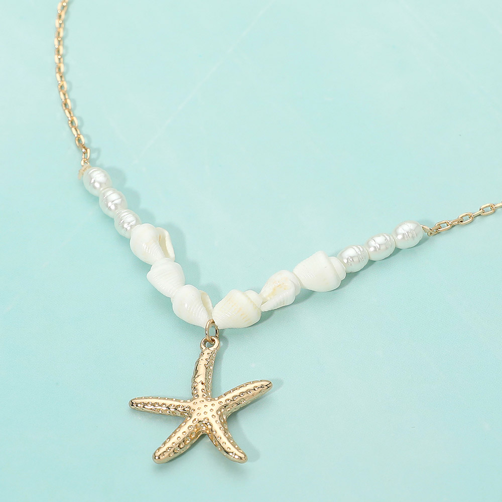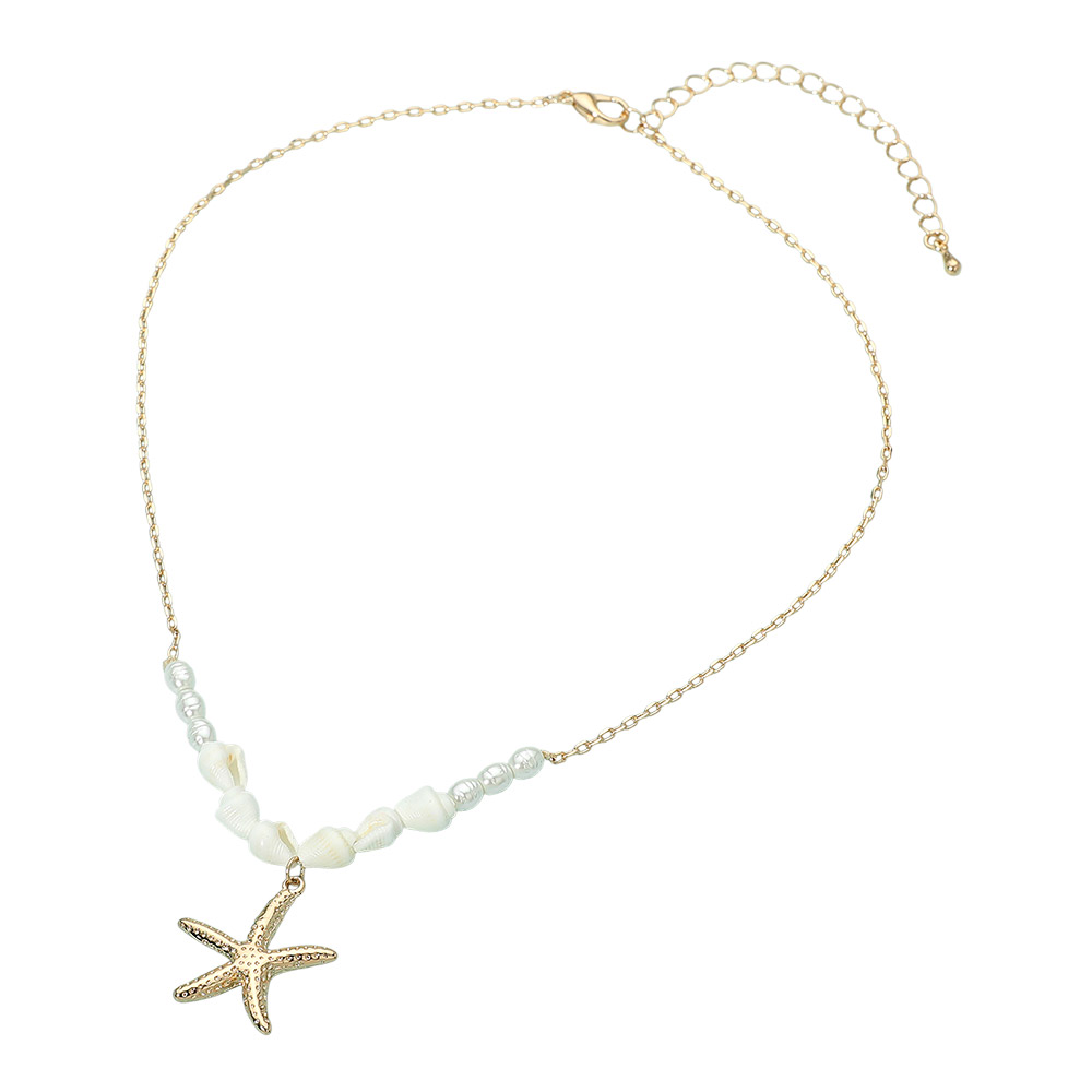 Details • Necklace Size : 16" + 3" L • Pendant Size : 0.8" X 1" • Elegant beaded pendant necklace featuring a starfish charm with a delicate, beach-inspired silhouette. Designed for easy layering or standout solo styling, this necklace brings a relaxed coastal feel to everyday looks, resort collections, and seasonal assortments. A versatile accessory for boutiques seeking ocean-themed jewelry with timeless appeal. • Lead and Nickel Compliant