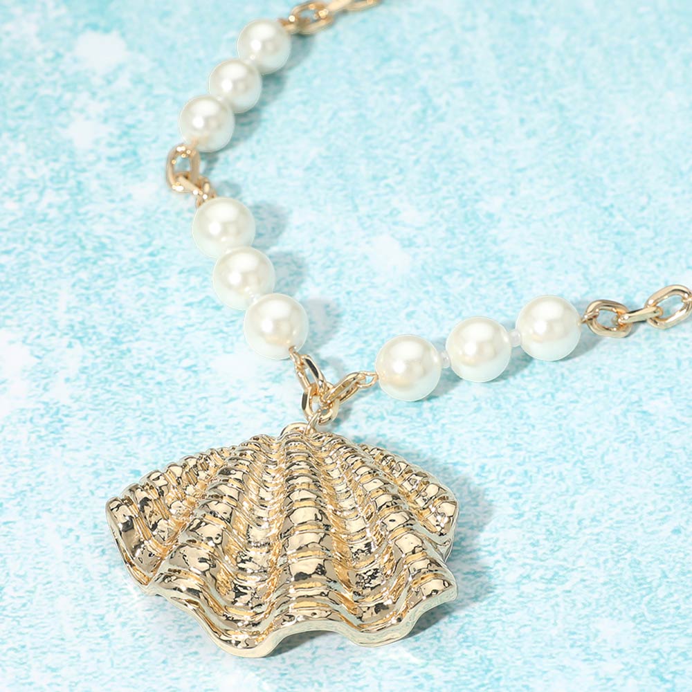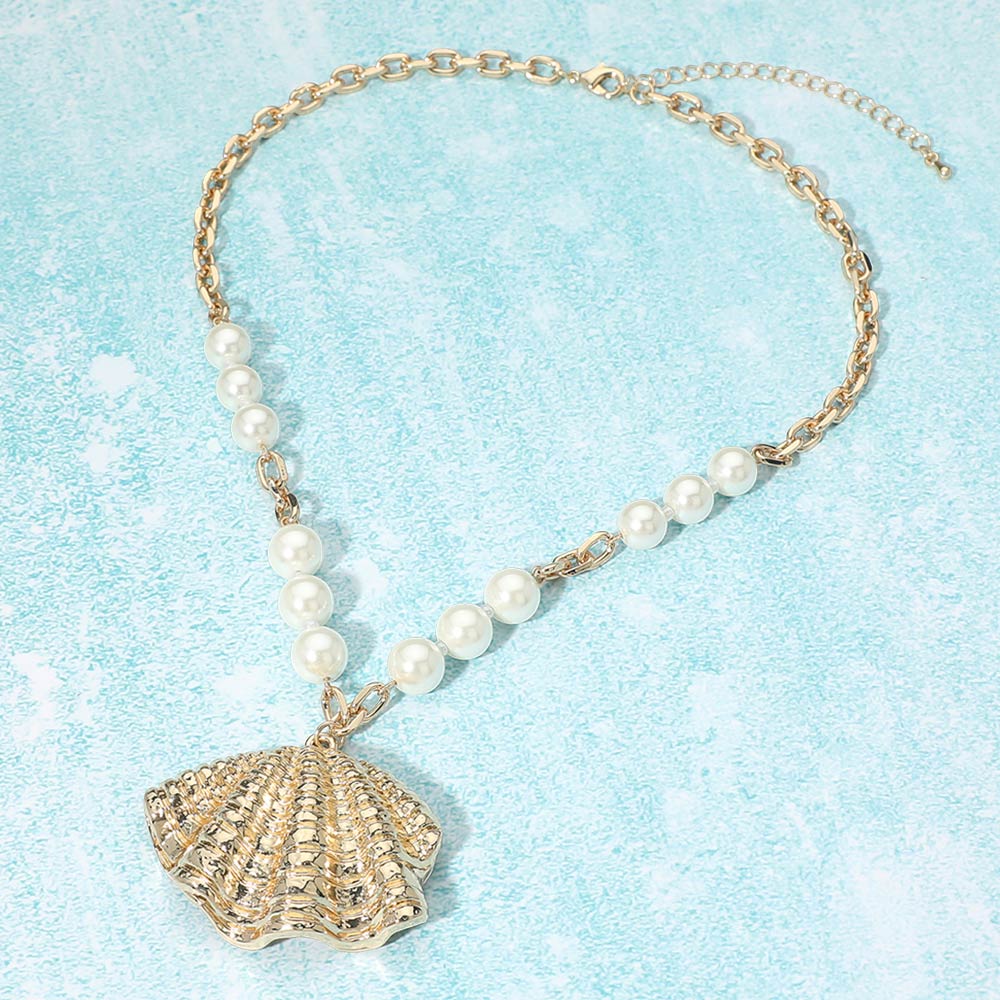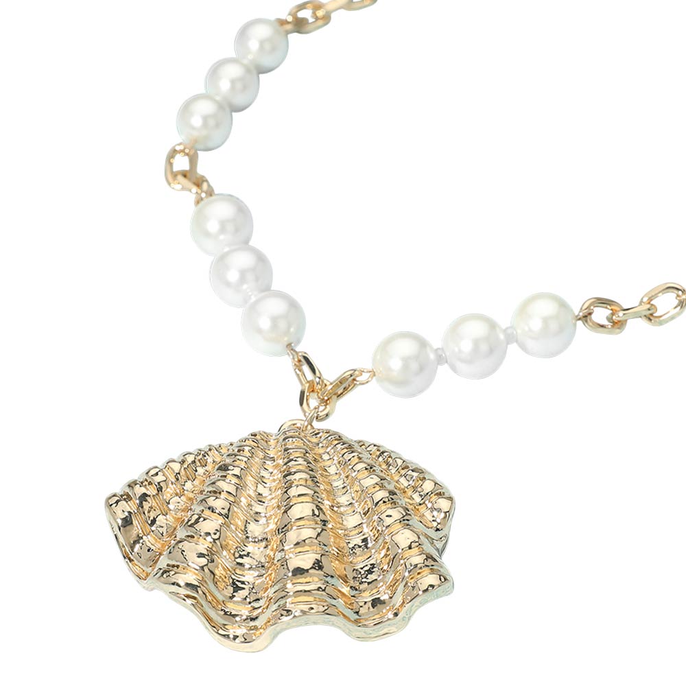 Textured Sea Shell Pendant Accent Pearl Chain Necklace Textured Sea Shell Pendant Accent Pearl Chain Necklace Textured Sea Shell Pendant Accent Pearl Chain Necklace