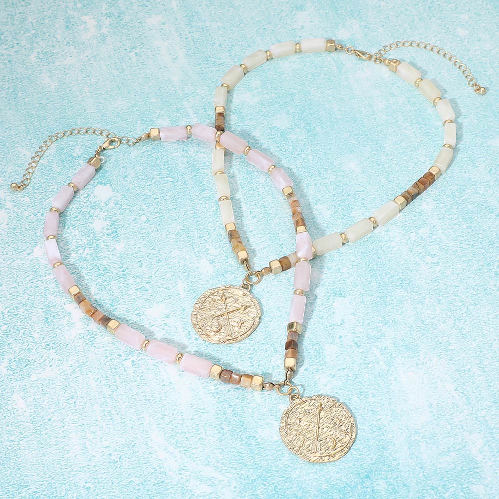 Textured Zodiac Coin Pendant Beaded Necklace Textured Zodiac Coin Pendant Beaded Necklace Textured Zodiac Coin Pendant Beaded Necklace