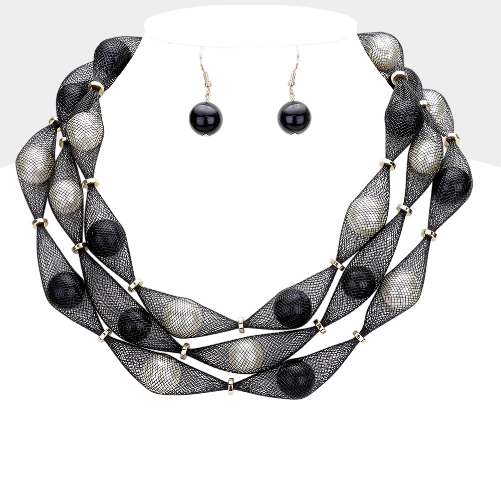 Pearl Accented Triple Layered Mesh Bib Necklace