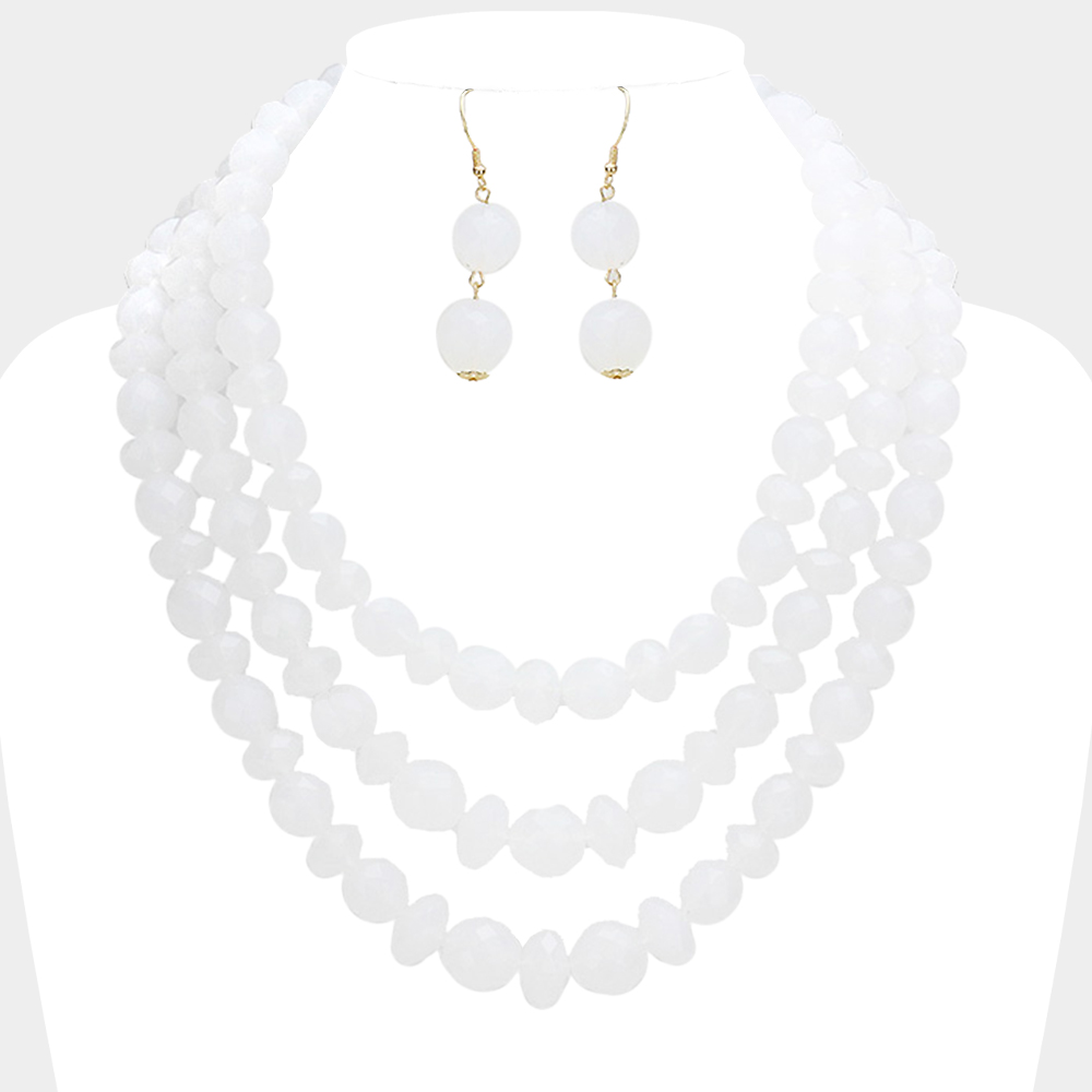 Triple Strand Beaded Bib Necklace