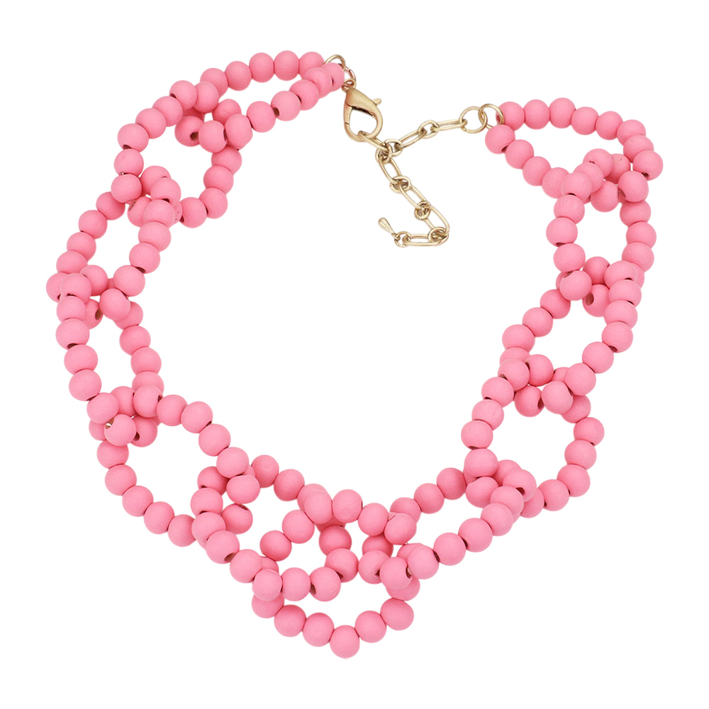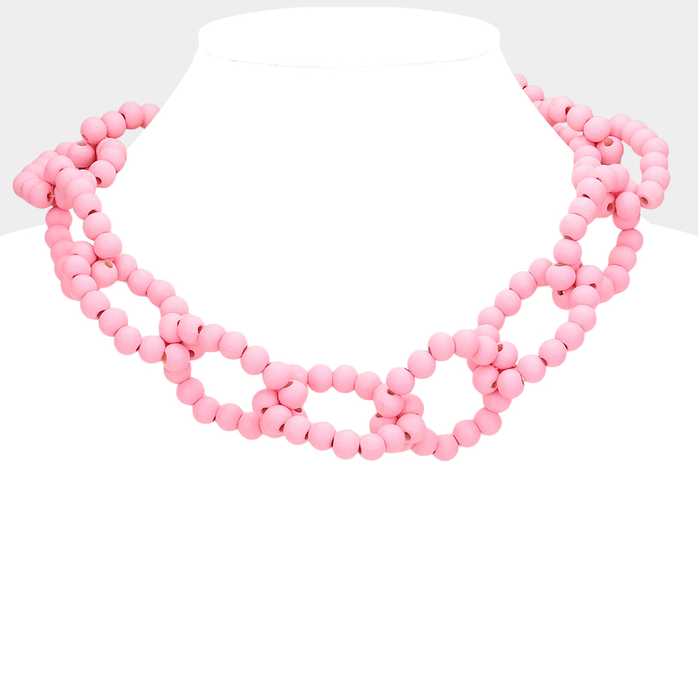 Wood Beaded Open Oval Link Necklace