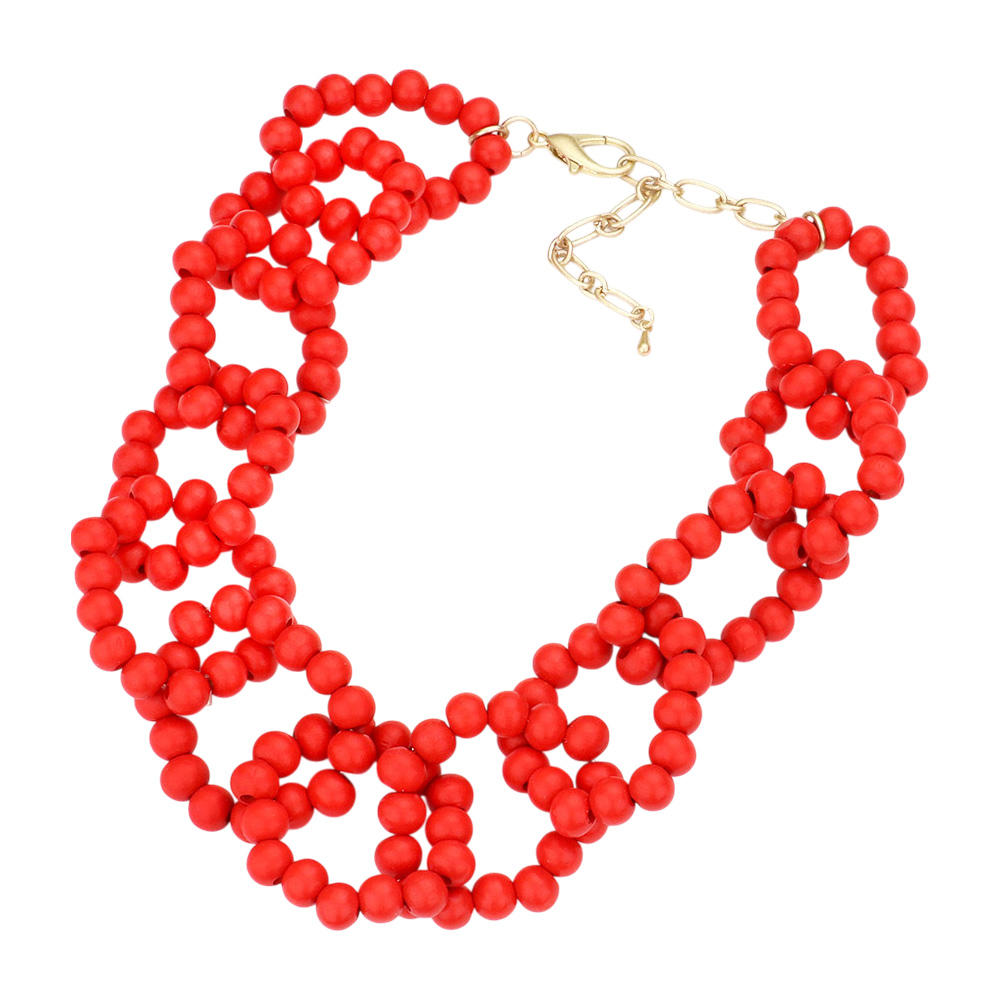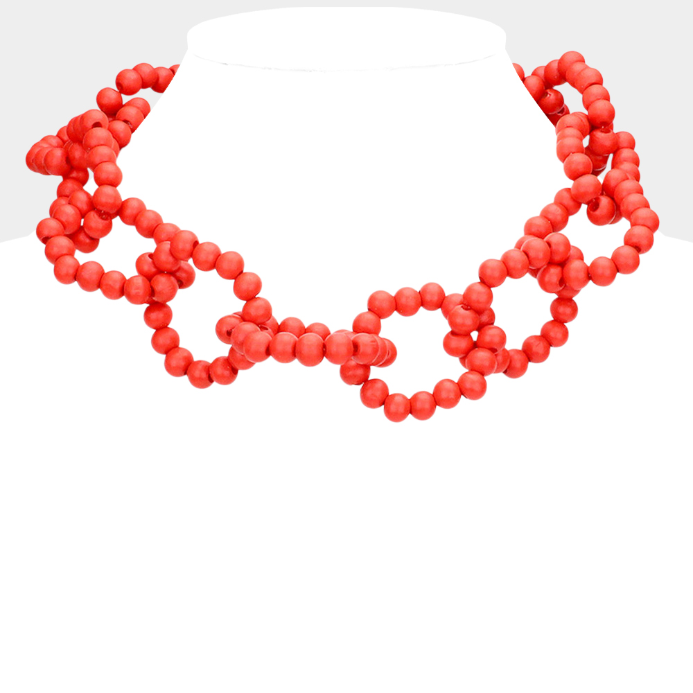 Wooden Metal Bat Beaded Spike Statement Necklace