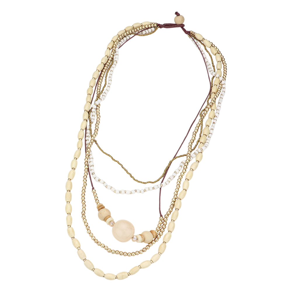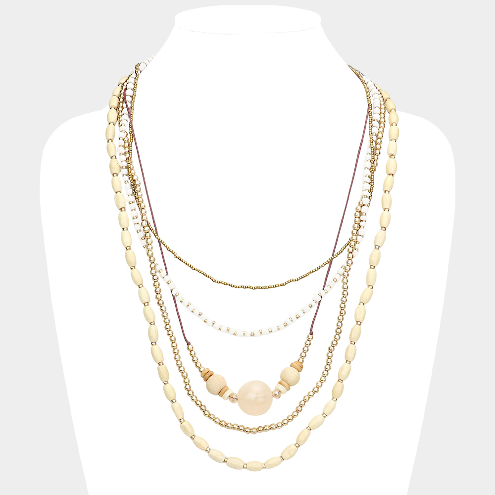 3PCS - Pearl Accent Metal Wooden Ball Beaded Stretch Multi Layered Bracelets