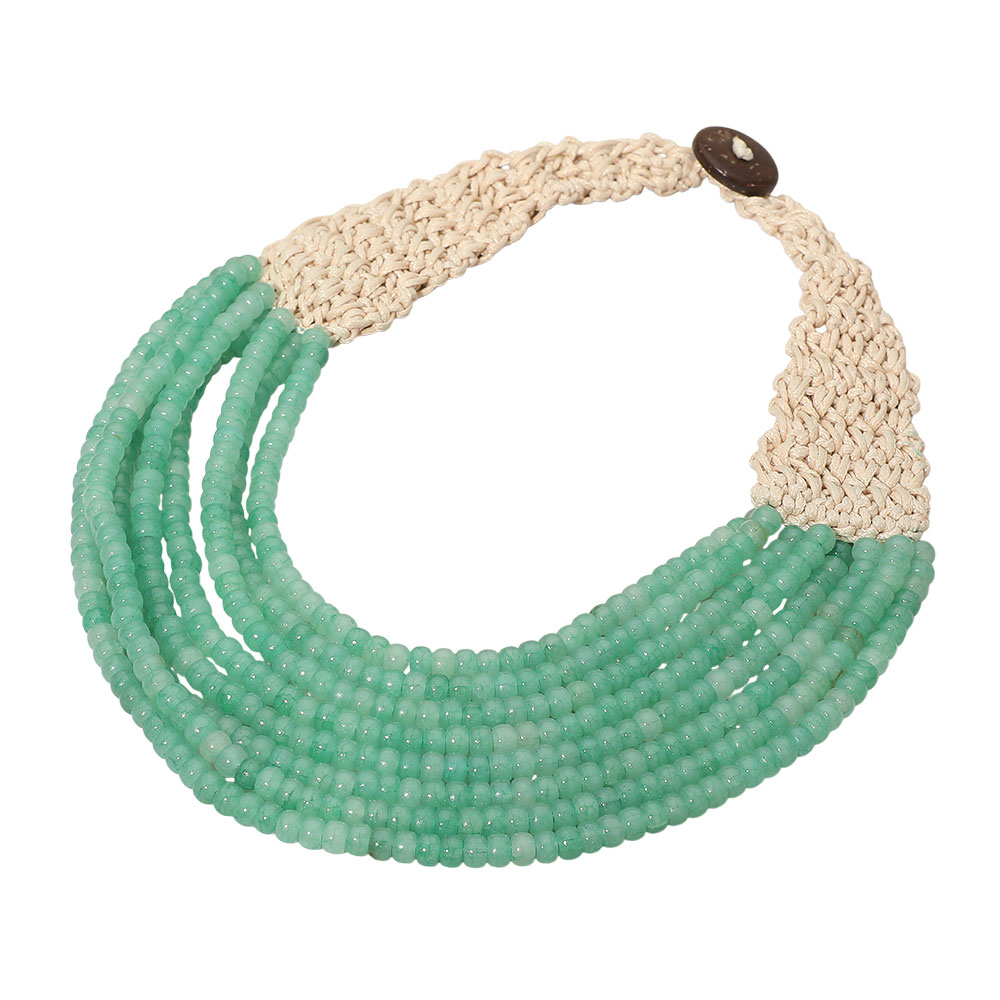 Woven Detail Multi Strand Beaded Collar Statement Necklace