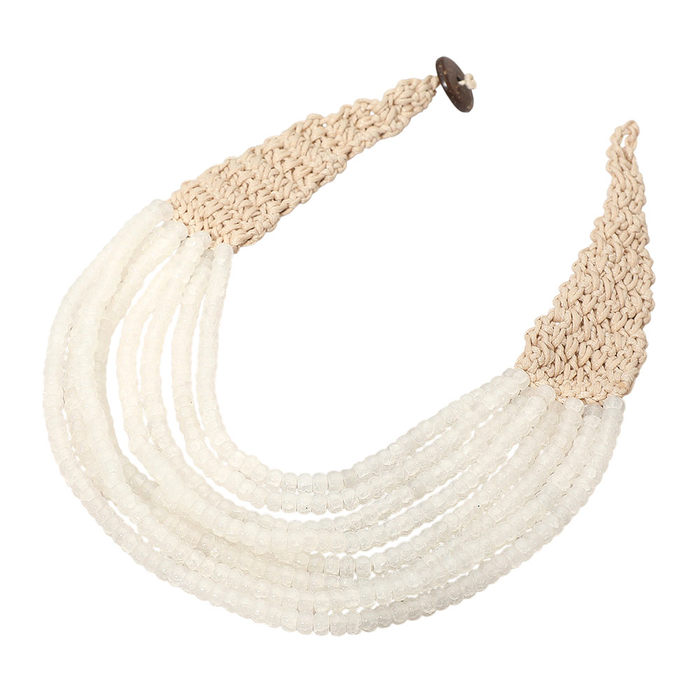 Woven Detail Multi Strand Beaded Collar Statement Necklace