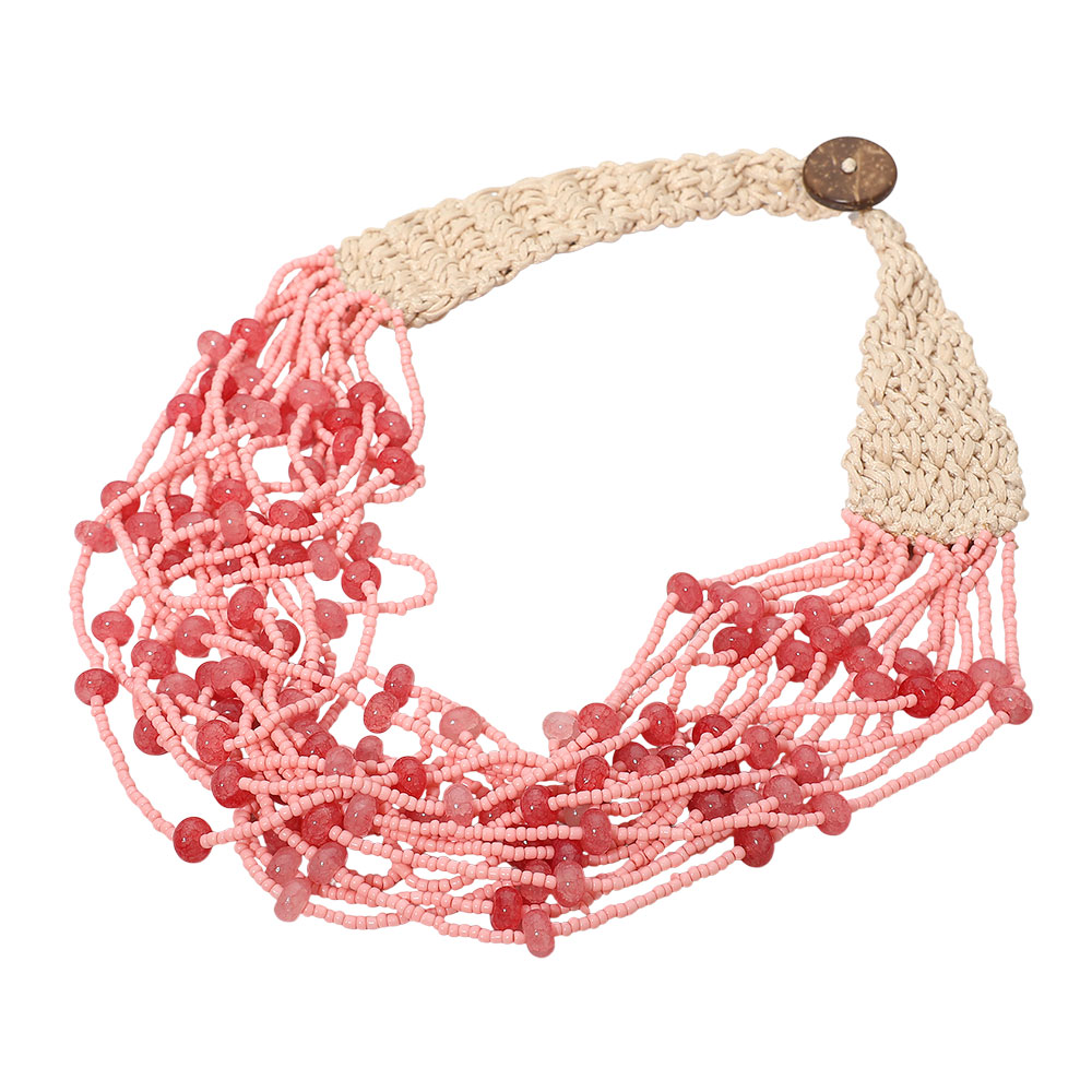 Woven Detail Multi Strand Seed Beaded Collar Statement Necklace