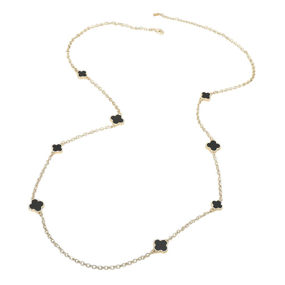 14K Gold Plated Onix Quatrefoil Motif Station Long Necklace 14K Gold Plated Onix Quatrefoil Motif Station Long Necklace