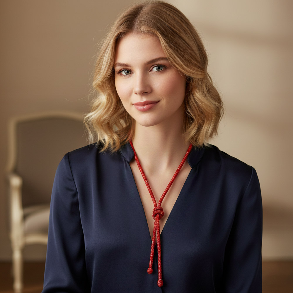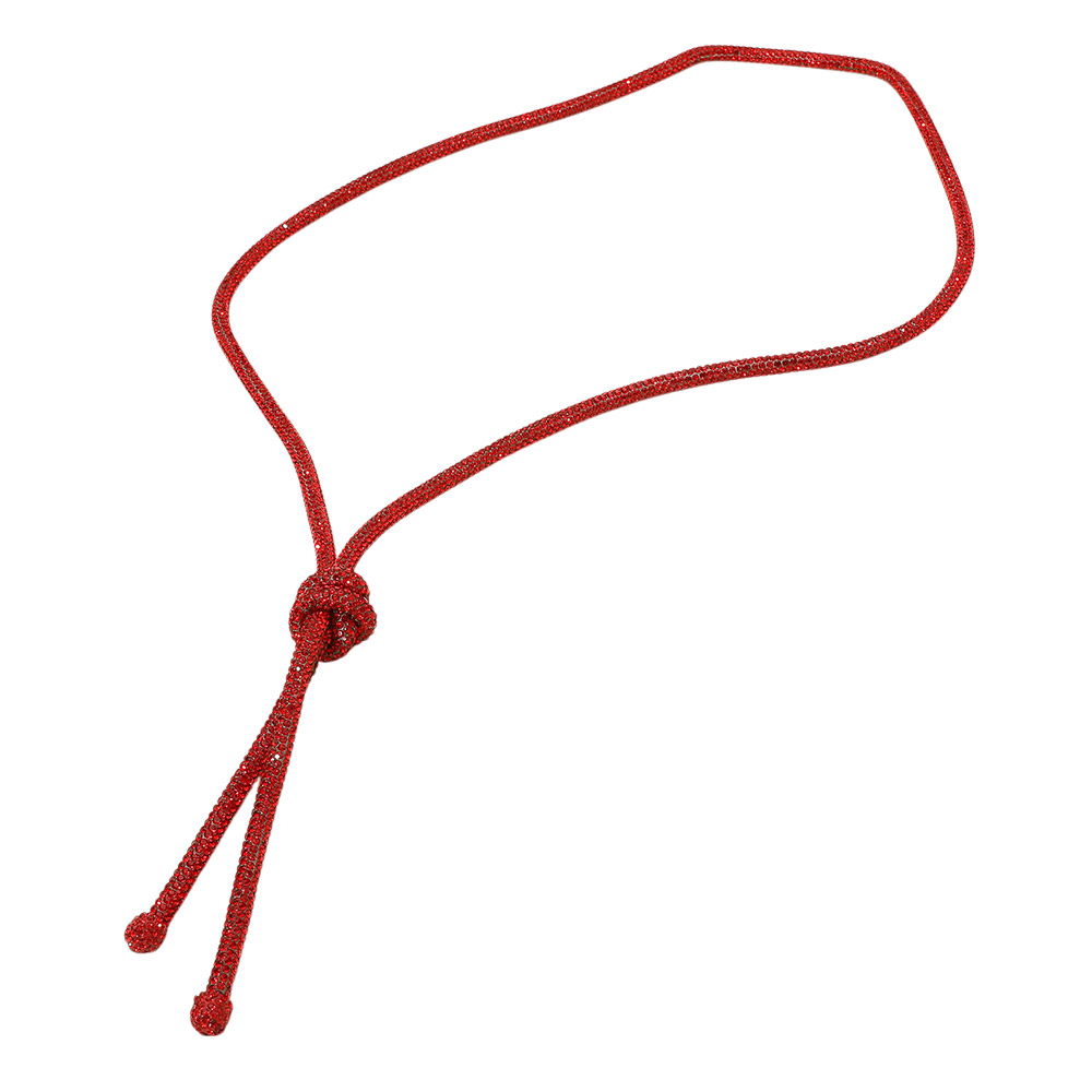 • This elegant bling studded lariat chain necklace features a sleek knotted design that drapes beautifully for a modern, sophisticated look. Perfect for both casual and formal settings, its adjustable length and minimalist charm make it a versatile addition to any jewelry collection.