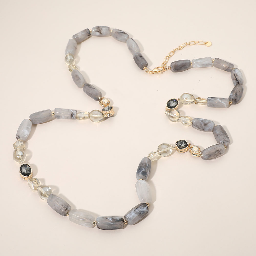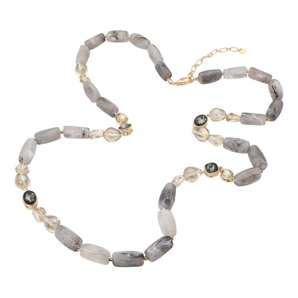 Chunky Oval Faceted Stone Marbled Pebble Beaded Long Necklace