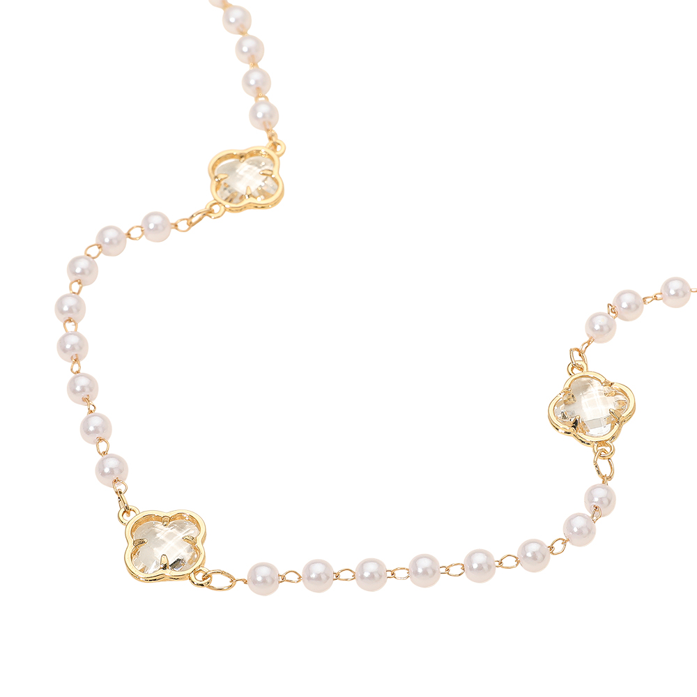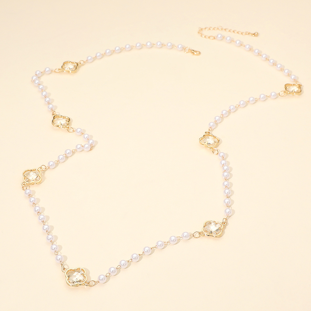 Clear Quatrefoil Cluster Station Pearl Long Necklace Clear Quatrefoil Cluster Station Pearl Long Necklace Clear Quatrefoil Cluster Station Pearl Long Necklace