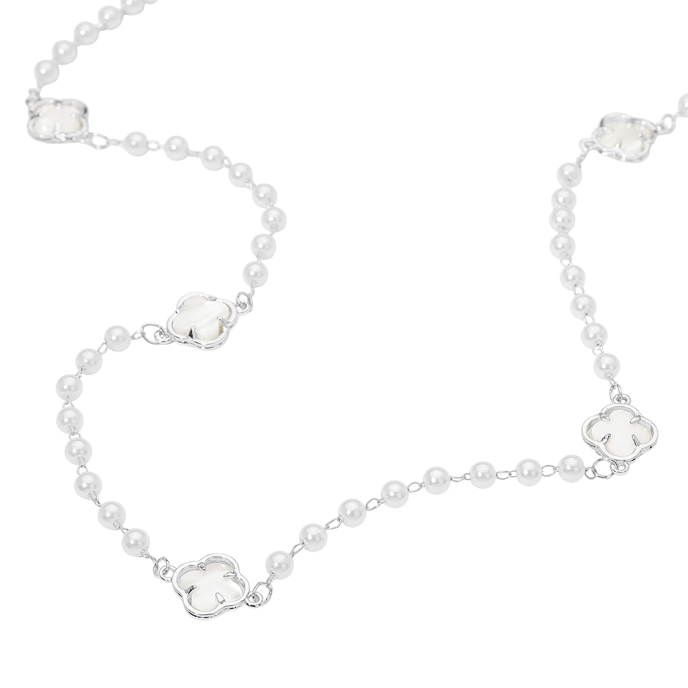 Clear Quatrefoil Cluster Station Pearl Long Necklace
