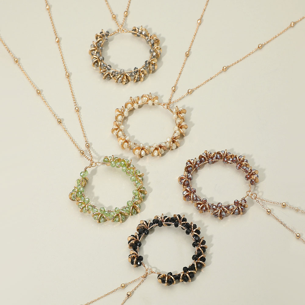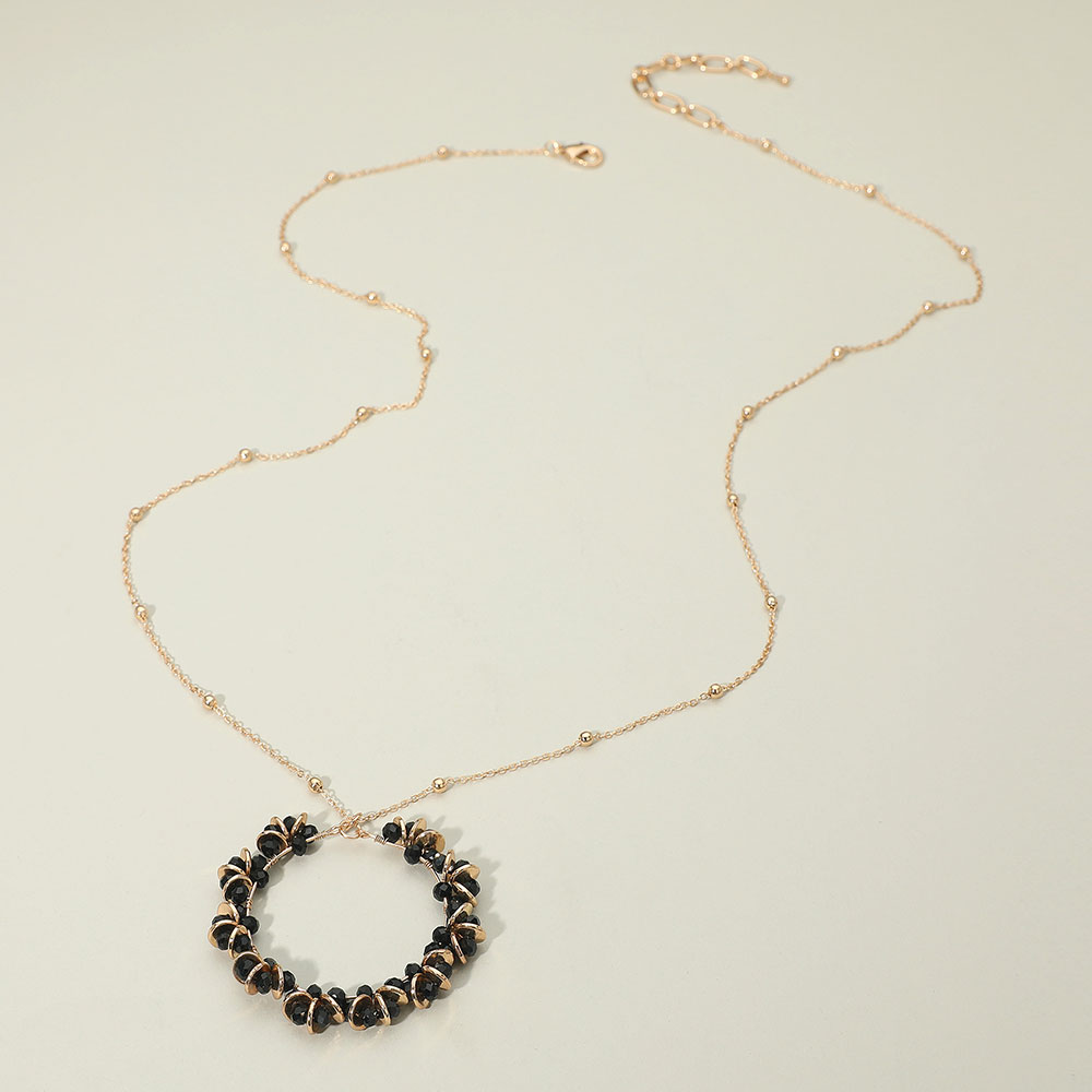 Metal Disc Faceted Beaded Open Ring Pendant Long Necklace