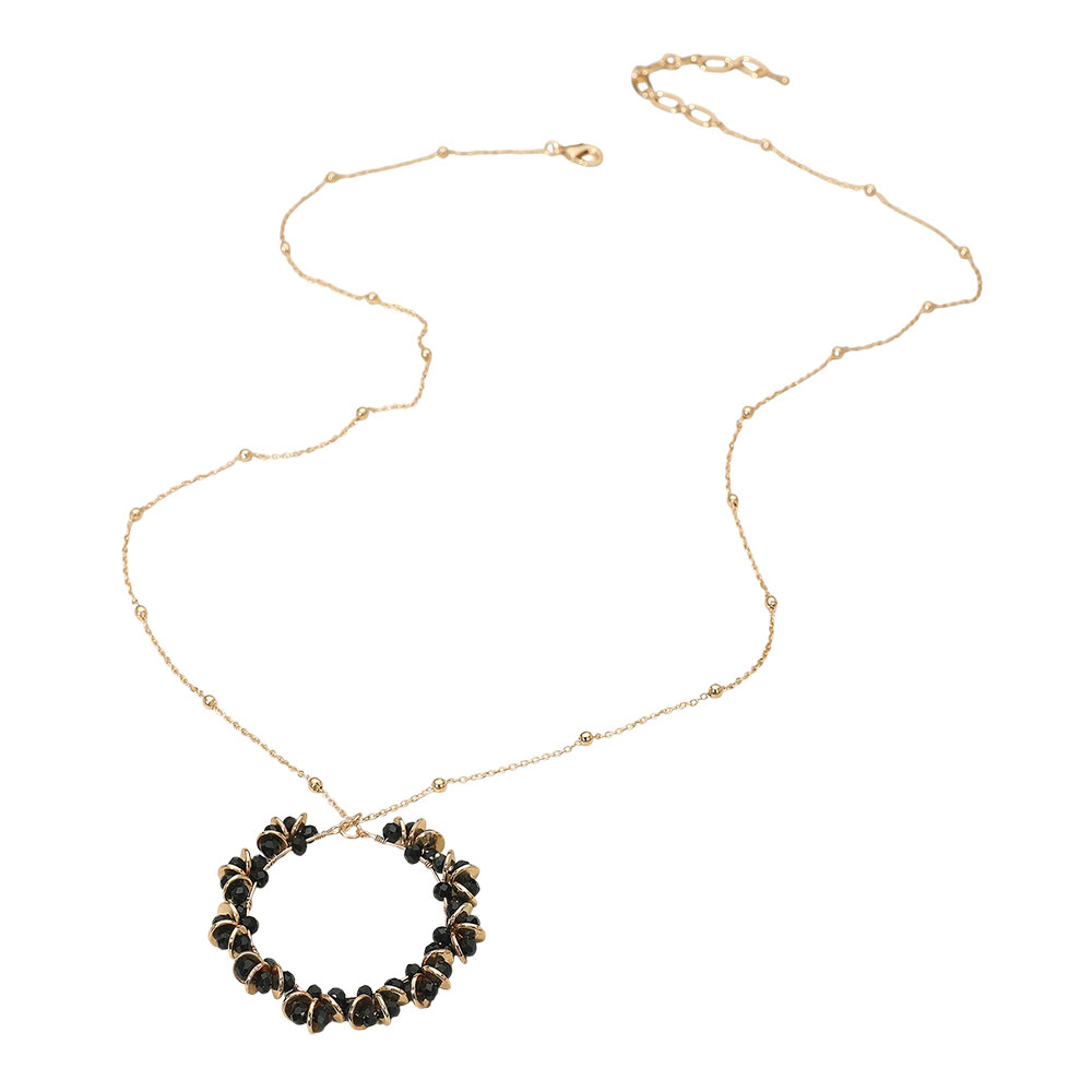 Details • Necklace Size : 32" + 3" L • Pendant Size : 2.25" X 2" • Enhance your style with this delicate beaded circle pendant necklace. Featuring a fine chain accented with subtle bead details, it adds a touch of refinement to any outfit. Perfect for layering or wearing solo, this elegant design complements both casual and formal looks. • Lead and Nickel Compliant