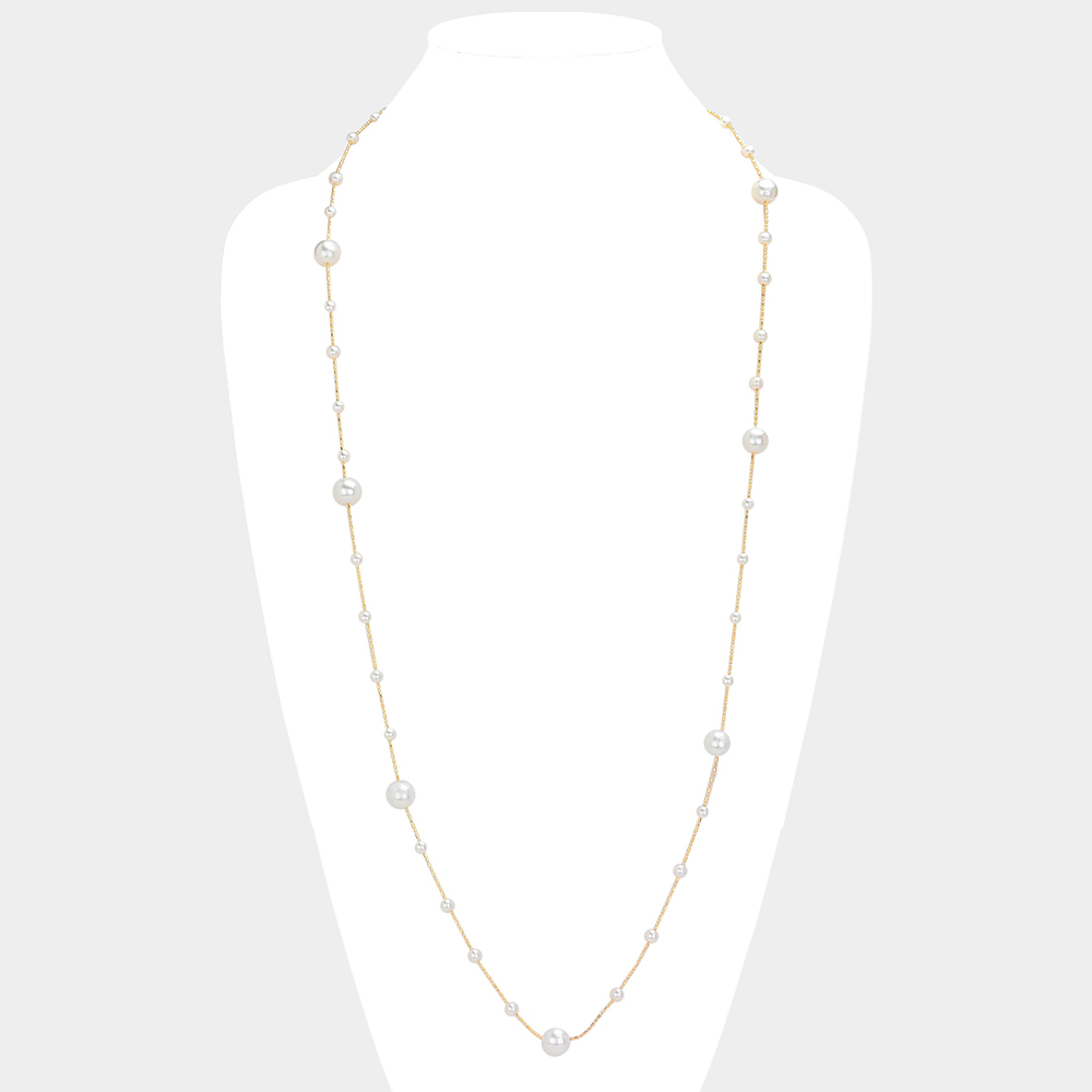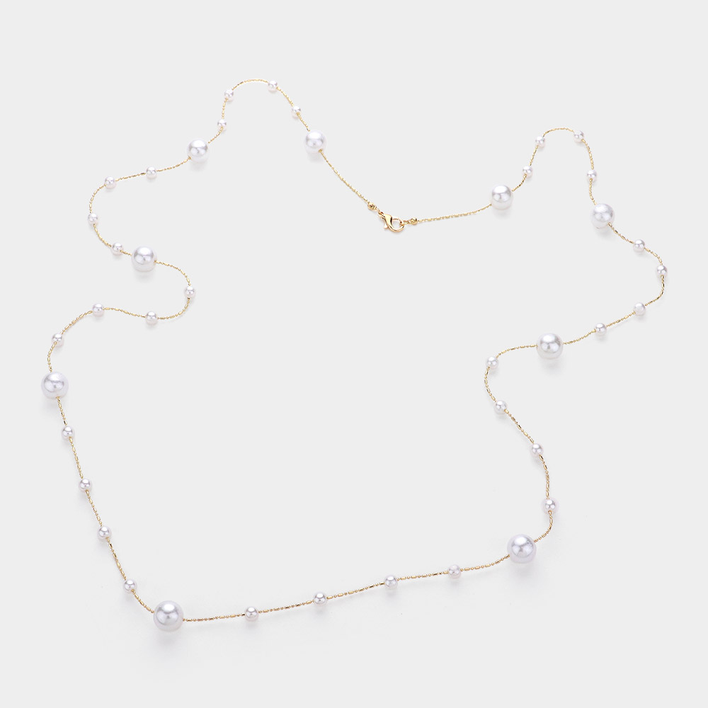 Metal Disc Pendant Pearl Double Layered Y Necklace