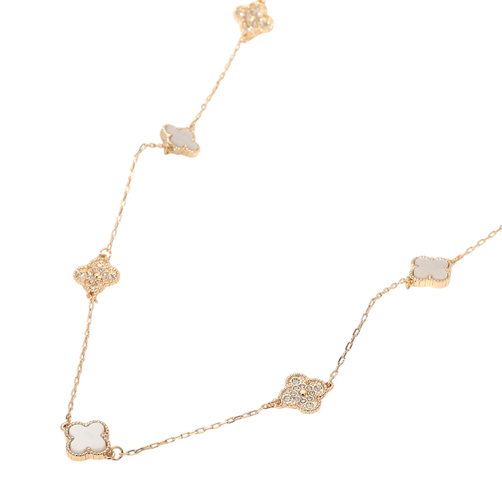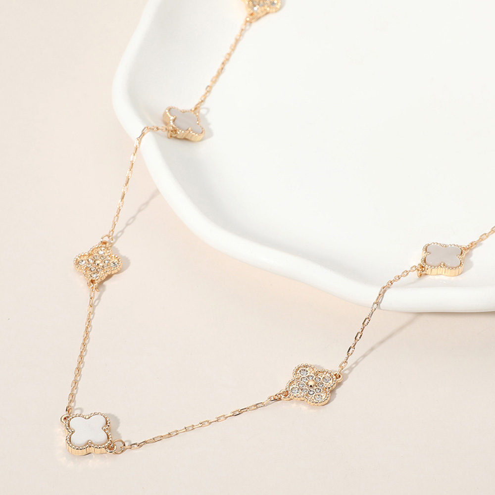 • Chic and delicate necklace featuring quatrefoil-inspired pendants with shimmering accents. A perfect accessory for everyday elegance or refined occasions. Lightweight and timeless in design.
