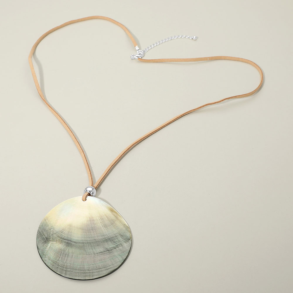 • This long necklace features a smooth abalone round disc pendant with subtle natural texture and a clean, modern silhouette. Designed for effortless styling, it works beautifully as a standalone statement or layered with other pieces, making it a versatile choice for everyday wear and curated boutique collections.