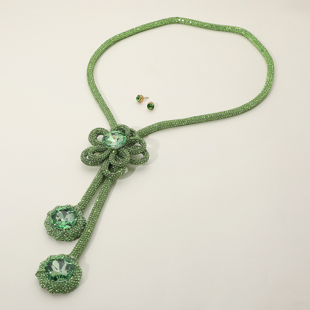• Make a dazzling impression with this statement crystal necklace featuring a radiant flower centerpiece and cascading drop accents. Perfect for parties, weddings, or elevating any elegant evening look.