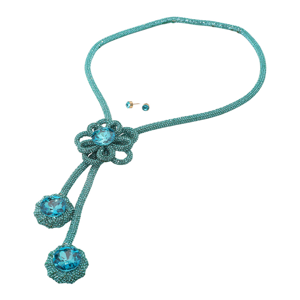 • Make a dazzling impression with this statement crystal necklace featuring a radiant flower centerpiece and cascading drop accents. Perfect for parties, weddings, or elevating any elegant evening look.