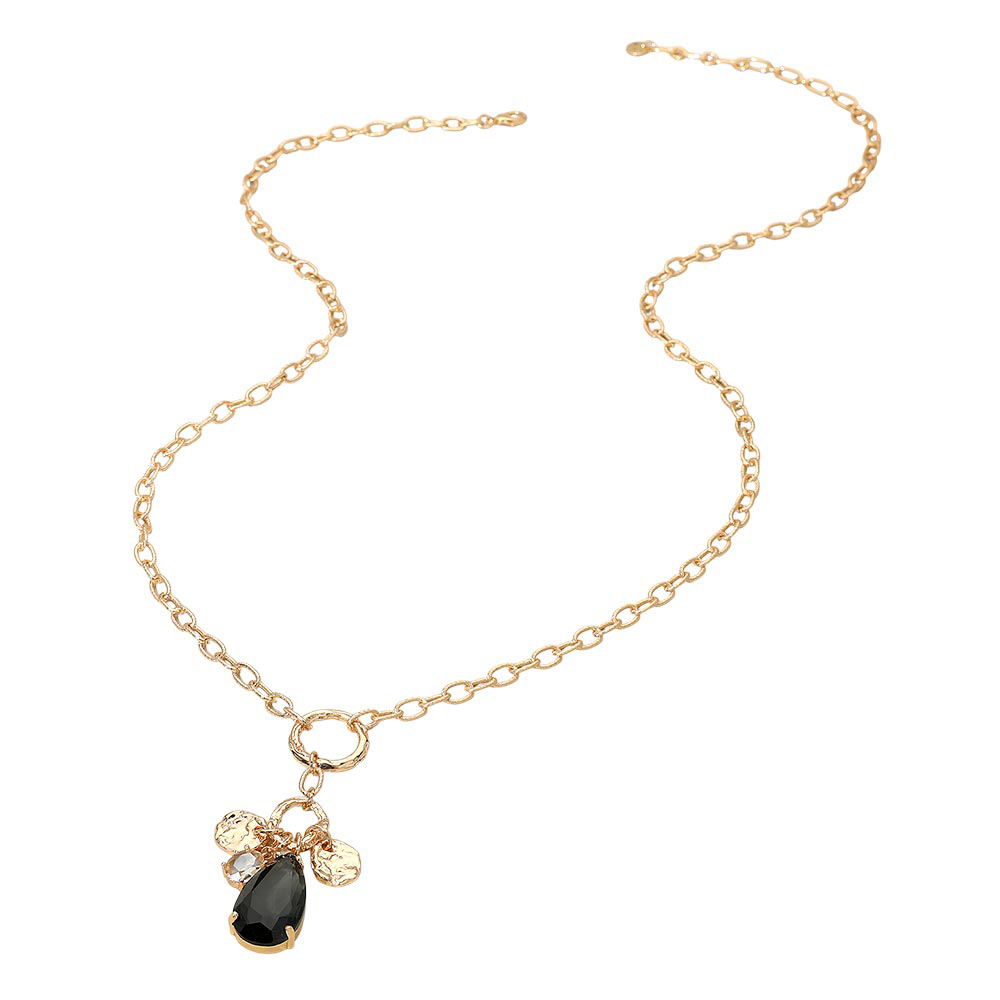 Teardrop Oval Stone Cluster Textured Medal Pendant Long Necklace Teardrop Oval Stone Cluster Textured Medal Pendant Long Necklace Teardrop Oval Stone Cluster Textured Medal Pendant Long Necklace