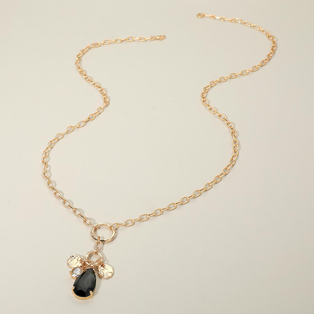 • Elegant chain necklace featuring a teardrop charm paired with small accent drops for a refined, modern look. Lightweight and easy to style, this versatile piece enhances everyday outfits or special occasions and can be layered or worn solo for added dimension.
