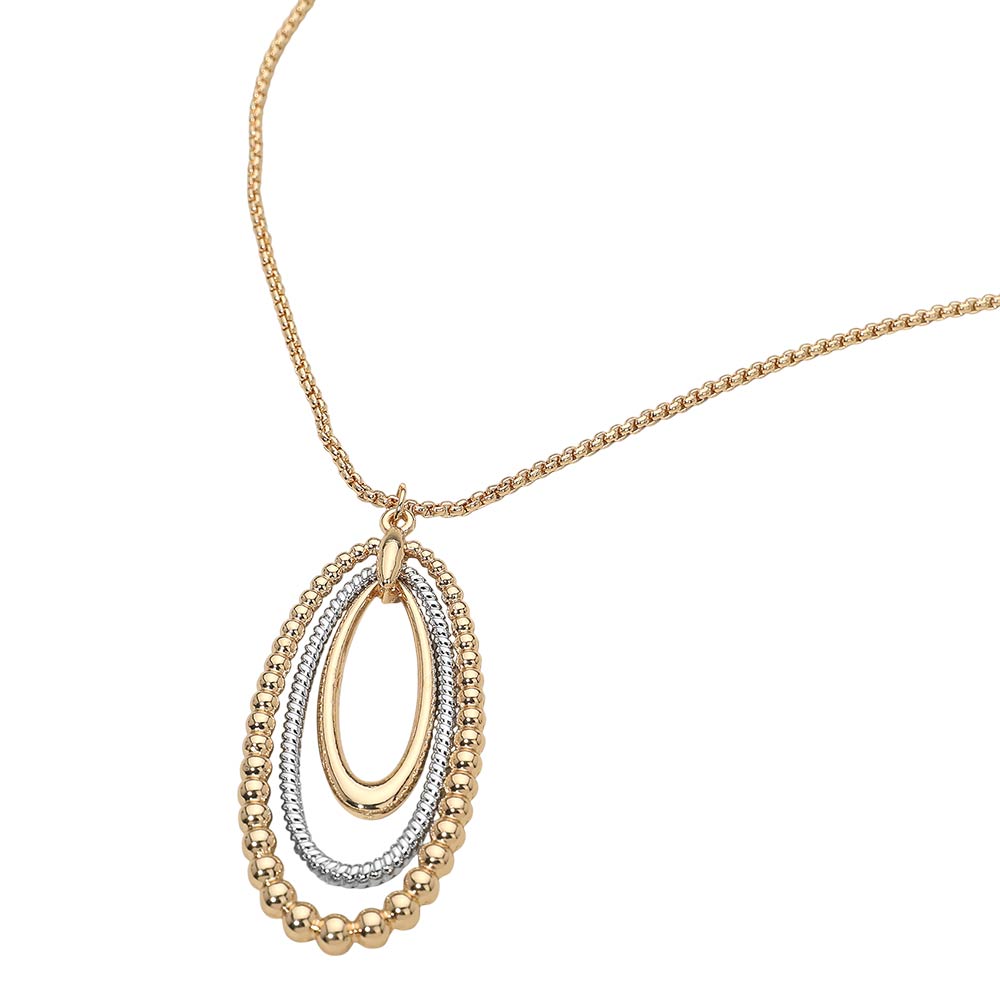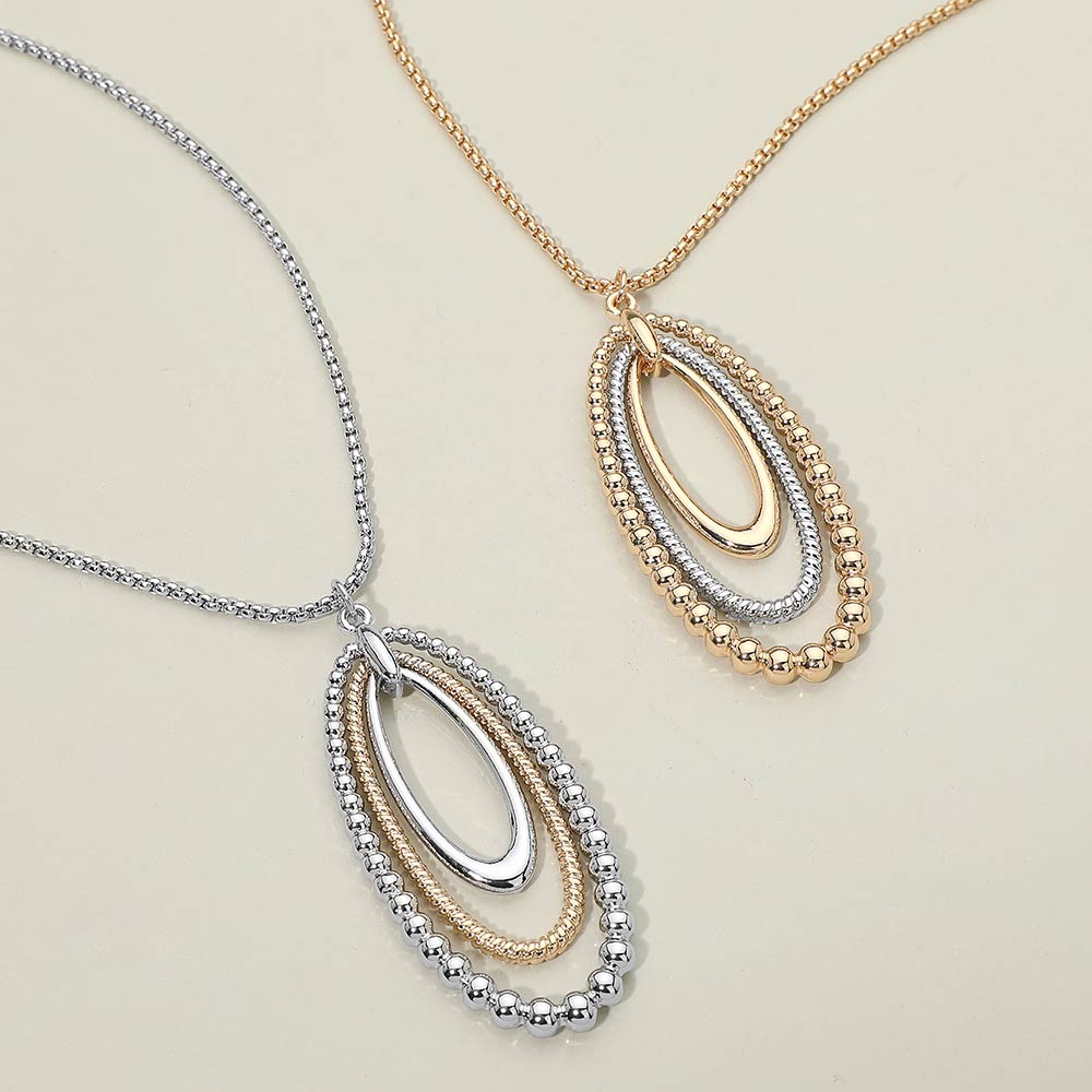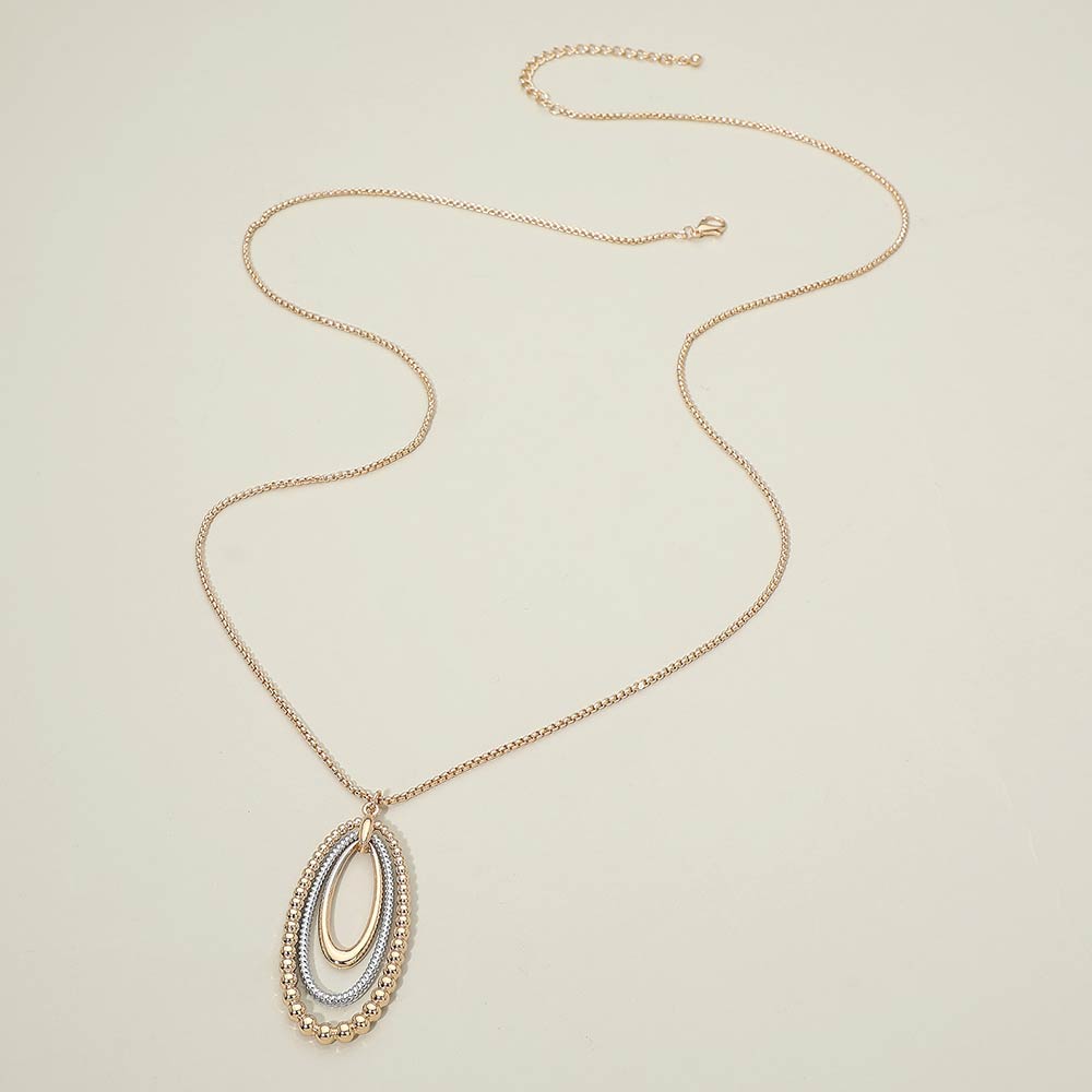 Two Tone Layered Bubble Oval Pendant Long Necklace