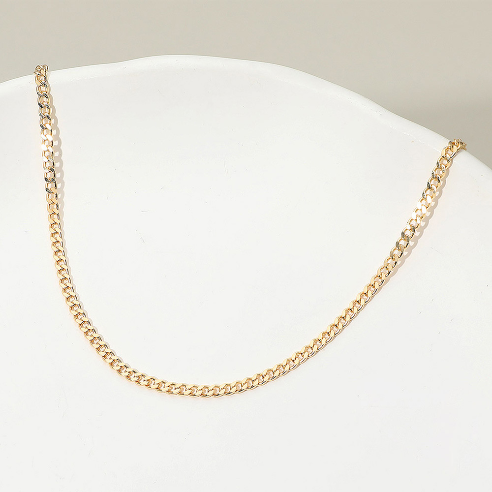 Details • Necklace Size : 18" L • Decor Size : 0.1" L (3mm) • Elegant curb chain necklace showcasing a smooth, reflective finish and uniform linked pattern. Its classic yet modern appeal makes it perfect for layering or wearing solo, offering effortless sophistication for any style or occasion. • Gold Filled • Lead and Nickel Compliant • Made In Brazil