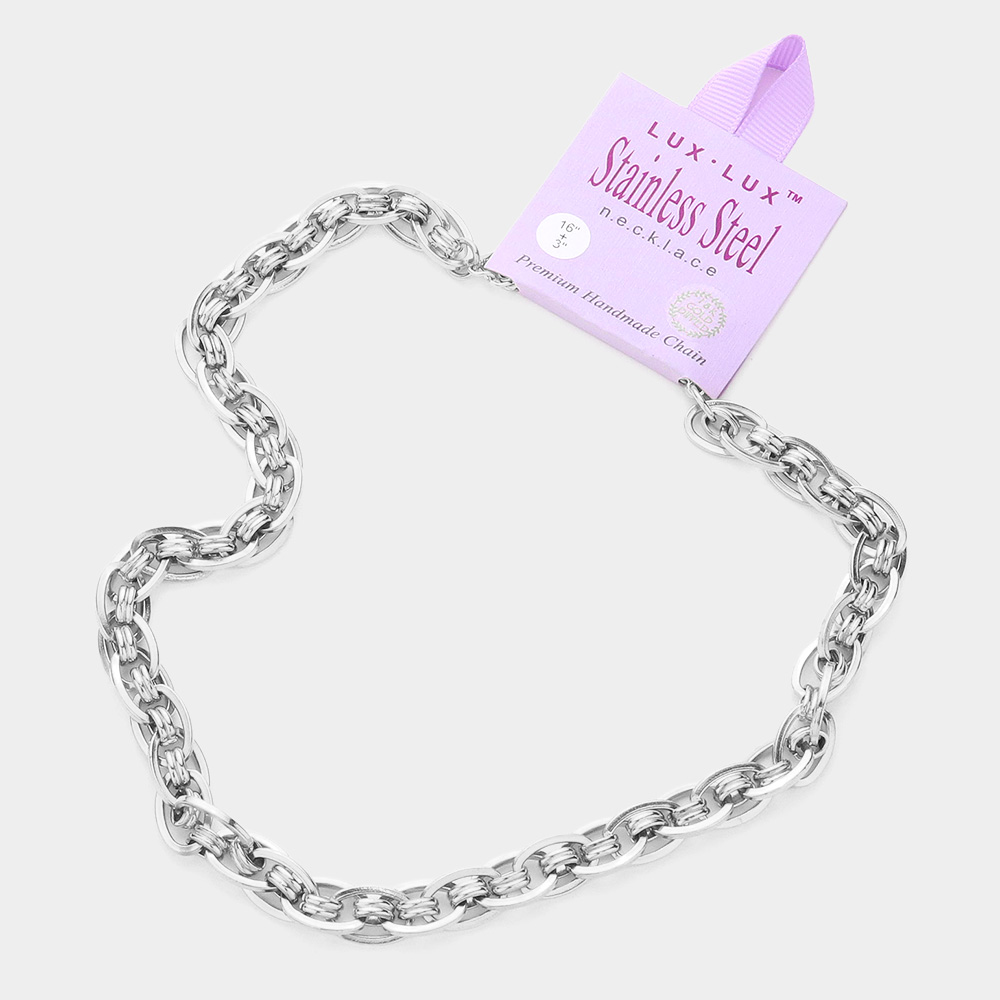 18K White Gold Dipped Stainless Steel Premium Handmade Chain Necklace