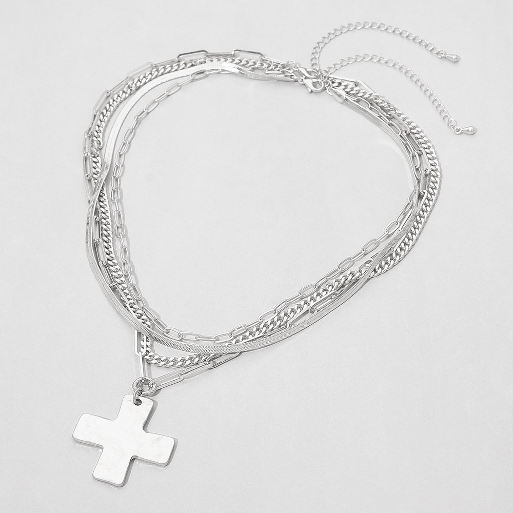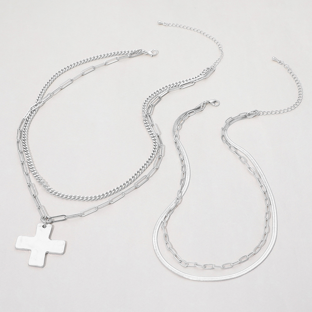 • Fashion-forward layered necklace set featuring mixed chain styles and a bold cross pendant detail. Designed for adjustable length, comfortable wear, and effortless layering to elevate everyday outfits or add impact to special occasion looks. Perfect for gifting or personal styling.