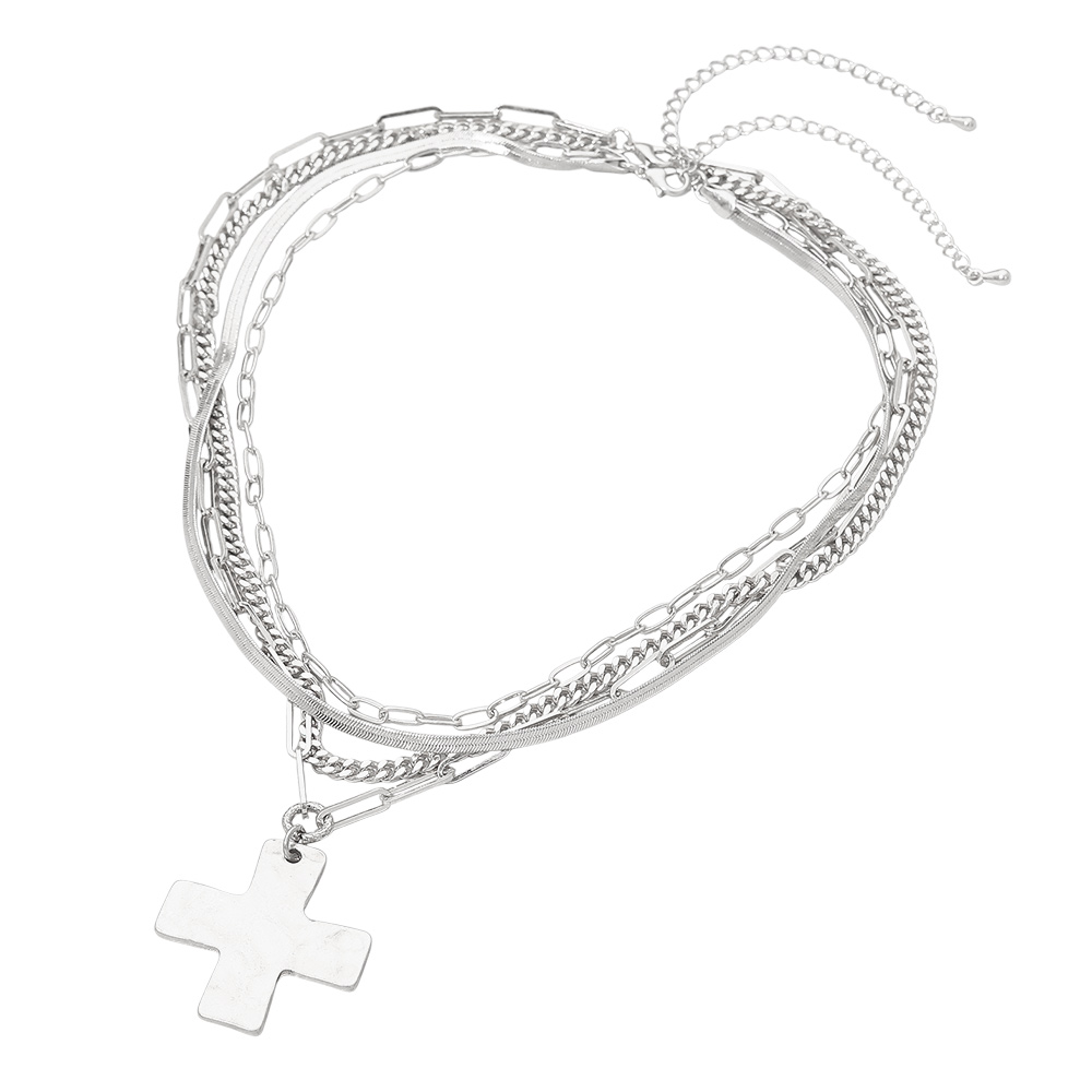 2PCS - Hammered Metal Cross Pendant Accent Multi Chain Layered Necklaces 2PCS - Hammered Metal Cross Pendant Accent Multi Chain Layered Necklaces 2PCS - Hammered Metal Cross Pendant Accent Multi Chain Layered Necklaces