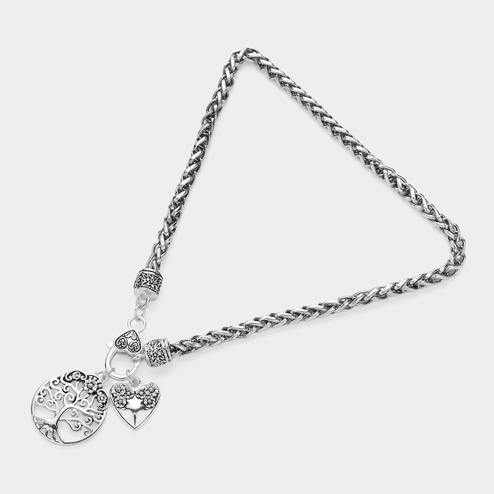Antique Metal Flower Heart Tree Of Life Pendant Necklace