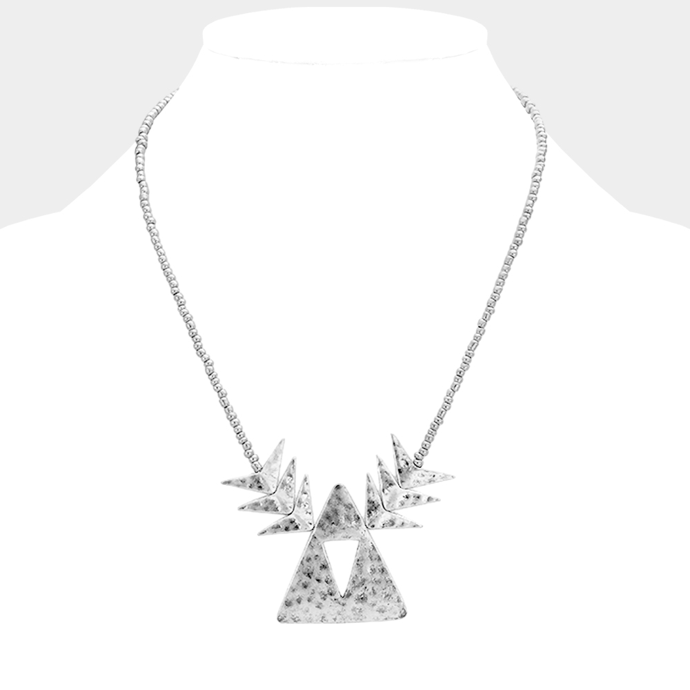 Oval Natural Stone Embossed Metal Pendant Necklace