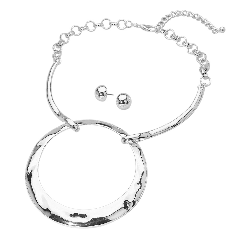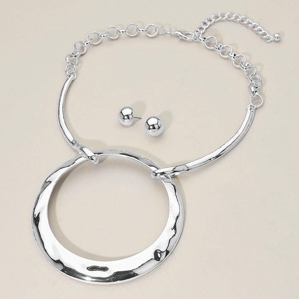 Details • Necklace Size : 17" + 3" L • Decor Size : 3.8" L • Earrings Size : 0.5" L • Elevate your style with this modern circle necklace and matching stud earring set designed for effortless sophistication. Featuring a bold open-ring pendant and sleek chain detail, it’s perfect for daily wear or special occasions, offering versatile elegance and a polished, contemporary finishing touch. • Lead and Nickel Compliant