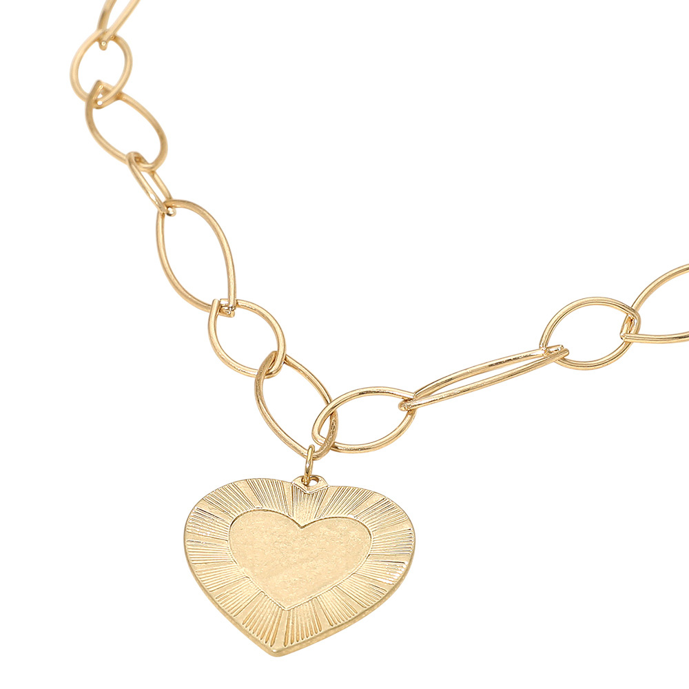 Bold Textured Heart Pendant Oval Link Chain Necklace Bold Textured Heart Pendant Oval Link Chain Necklace Bold Textured Heart Pendant Oval Link Chain Necklace