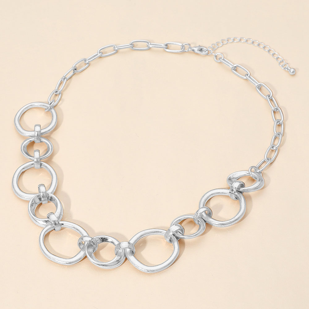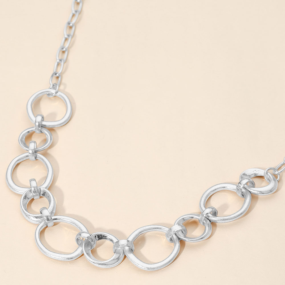 Details • Necklace Size : 18" + 3.25" L • Decor Size : 0.9" L • Elevate your look with a linked circle chain necklace featuring a sleek, open-link design that offers modern elegance and everyday versatility. Perfect for layering or wearing solo, this timeless accessory transitions effortlessly from casual wear to evening styling and easy gift giving. • Lead and Nickel Compliant