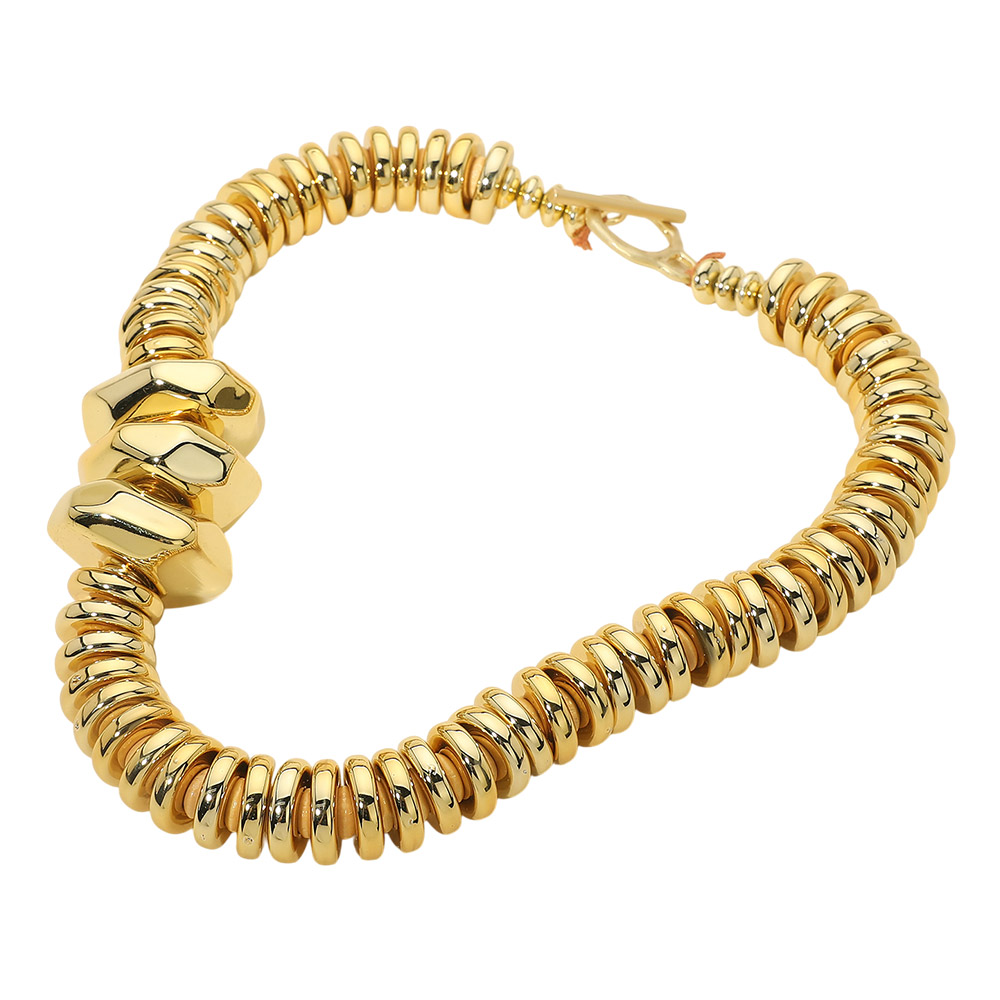 Details • Necklace Size : 19.5" + 1" L • Decor Size : 1.5" L • Toggle Closure • Bold statement bracelet designed with a chunky linked accent and a sleek, rounded silhouette for modern impact. Features a secure clasp closure and structured design that stands out worn alone or layered. Perfect for everyday styling or elevated looks, ideal for boutiques seeking strong, fashion-forward jewelry with a polished edge. • Lead and Nickel Compliant