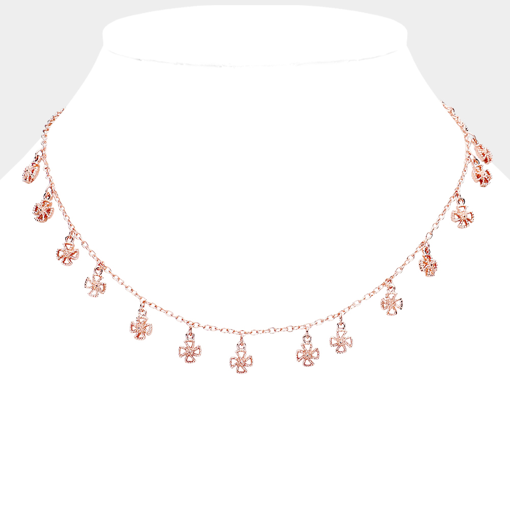 Iridescent Heart Stone Centered Ornate Cross Dangle Earrings