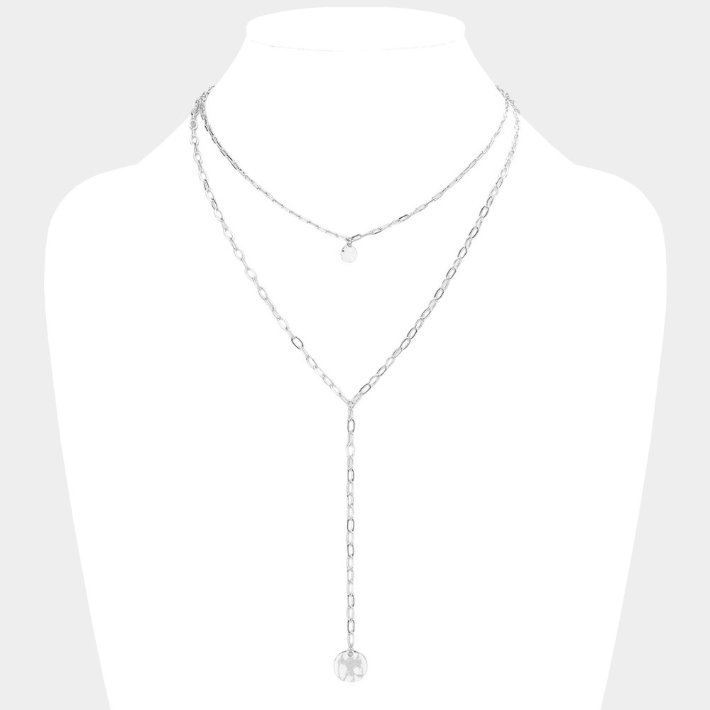 Crushed Metal Disc Pendant Double Layered Y Necklace