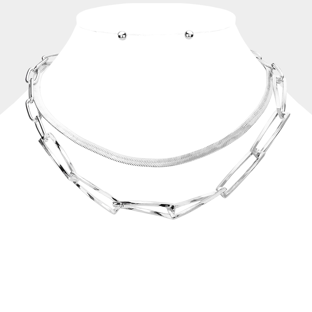 Double Layered Twisted Open Metal Rectangle Link Necklace