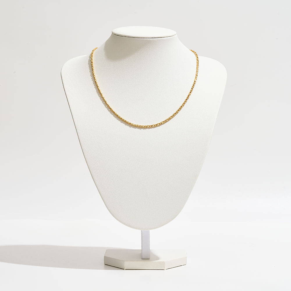 Details • Necklace Size : 16" + 1" L • Decor Size : 0.2" L • Add classic elegance to your look with this rope chain necklace, designed with intricate twisted links that catch the light beautifully. Perfect for layering or wearing solo, it’s a versatile staple that transitions effortlessly from everyday wear to special occasions. • Hypoallergenic • Made In Korea • Gold Dipped • Brass