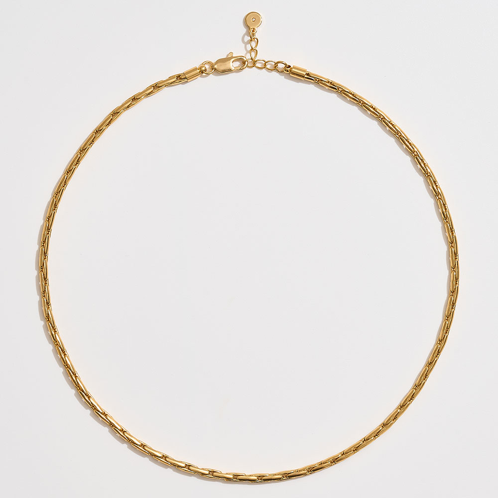 Details • Necklace Size : 18" + 1" L • Decor Size : 0.2" L • This wheat chain necklace features an intricate interwoven design that balances strength and elegance. Crafted from durable brass, it offers a refined finish that pairs effortlessly with any outfit. A timeless piece ideal for everyday wear or layering with other favorites. • Brass • Gold Dipped • Hypoallergenic • Made In Korea