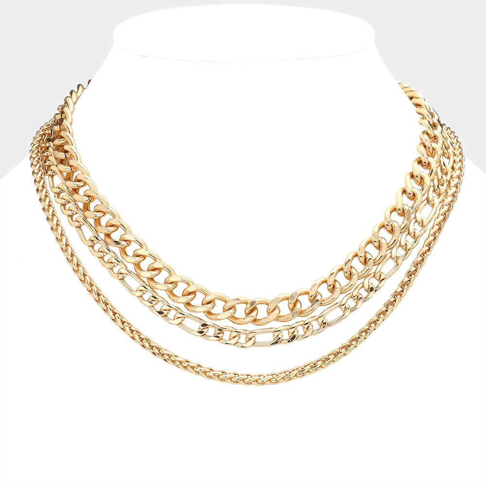 White Gold Dipped Metal Chain Triple Layered Necklace