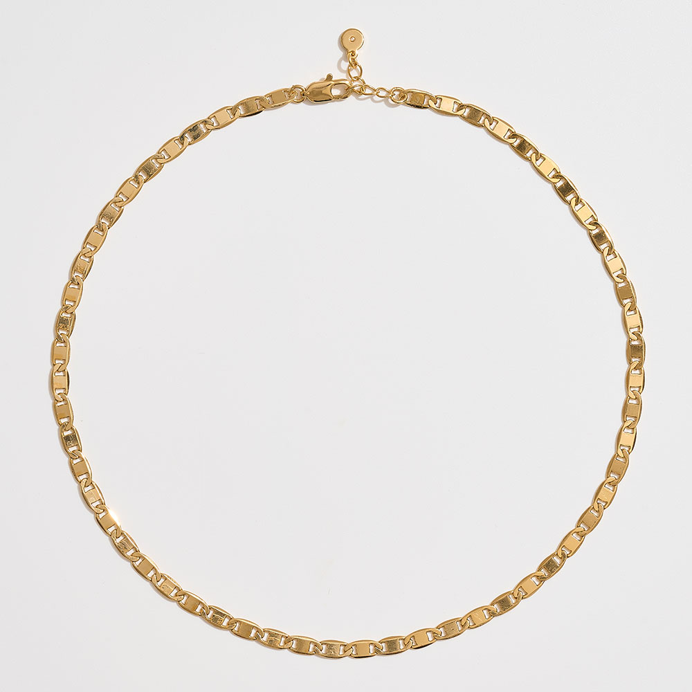 Details • Necklace Size : 18" + 1" L • Decor Size : 0.2" L • This square link chain necklace brings bold definition with its polished, structured design. Crafted from durable brass, it delivers a sleek, standout look perfect for layering or wearing solo. A versatile statement piece that elevates both everyday and evening styles. • Brass • Gold Dipped • Hypoallergenic • Made In Korea