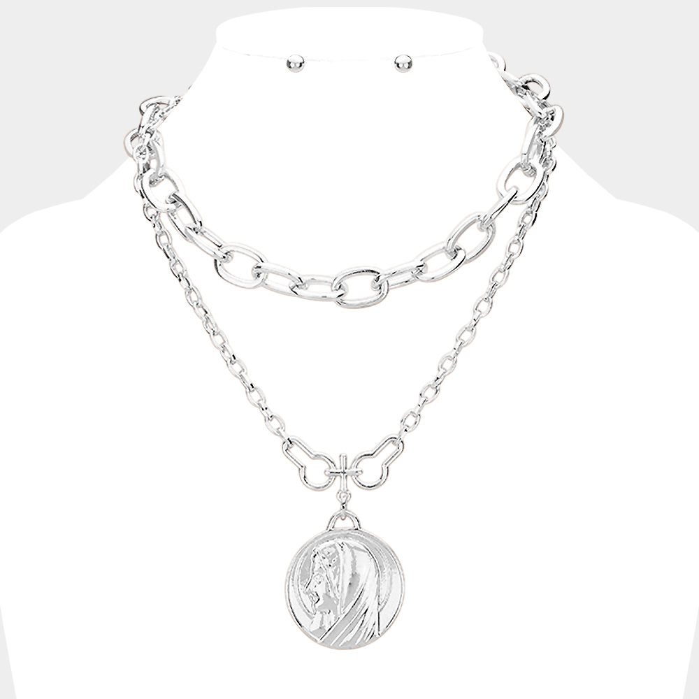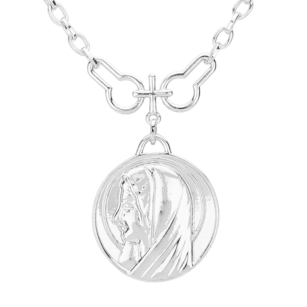 Cross Embossed Oval Charm Stone Bezel Link Bracelet