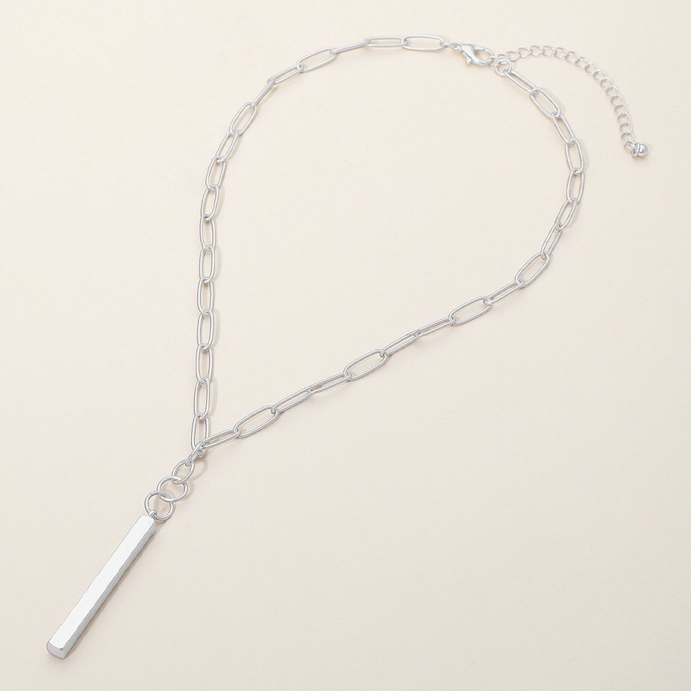 Matte Metal Bar Pendant Paperclip Chain Necklace