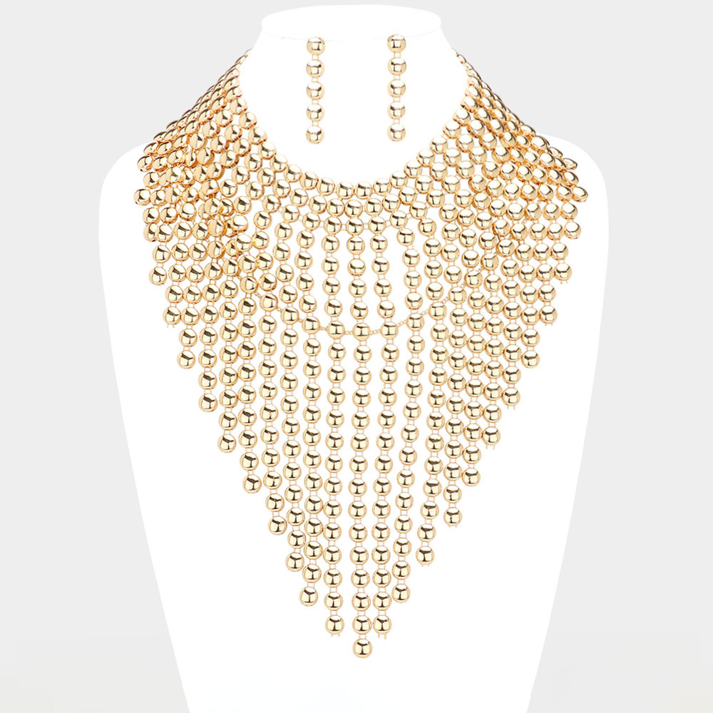 Metal Ball Fringe Collar Statement Necklace