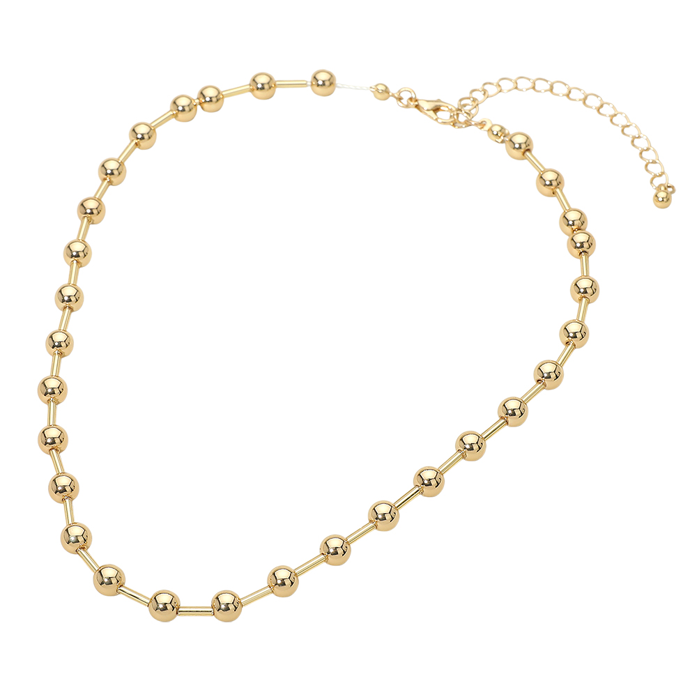Details • Necklace Size : 15" + 3" L • Decor Size : 0.2" L • Minimalist beaded ball chain necklace designed for effortless everyday styling and easy layering. Features evenly spaced rounded accents along a sleek chain for a clean, modern look that pairs well with pendants or stands alone. A versatile accessory ideal for casual outfits, workwear, and trend-focused jewelry collections. • Lead and Nickel Compliant