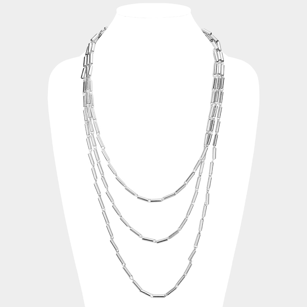 Metal Cylinder Triple Layered Bib Necklace