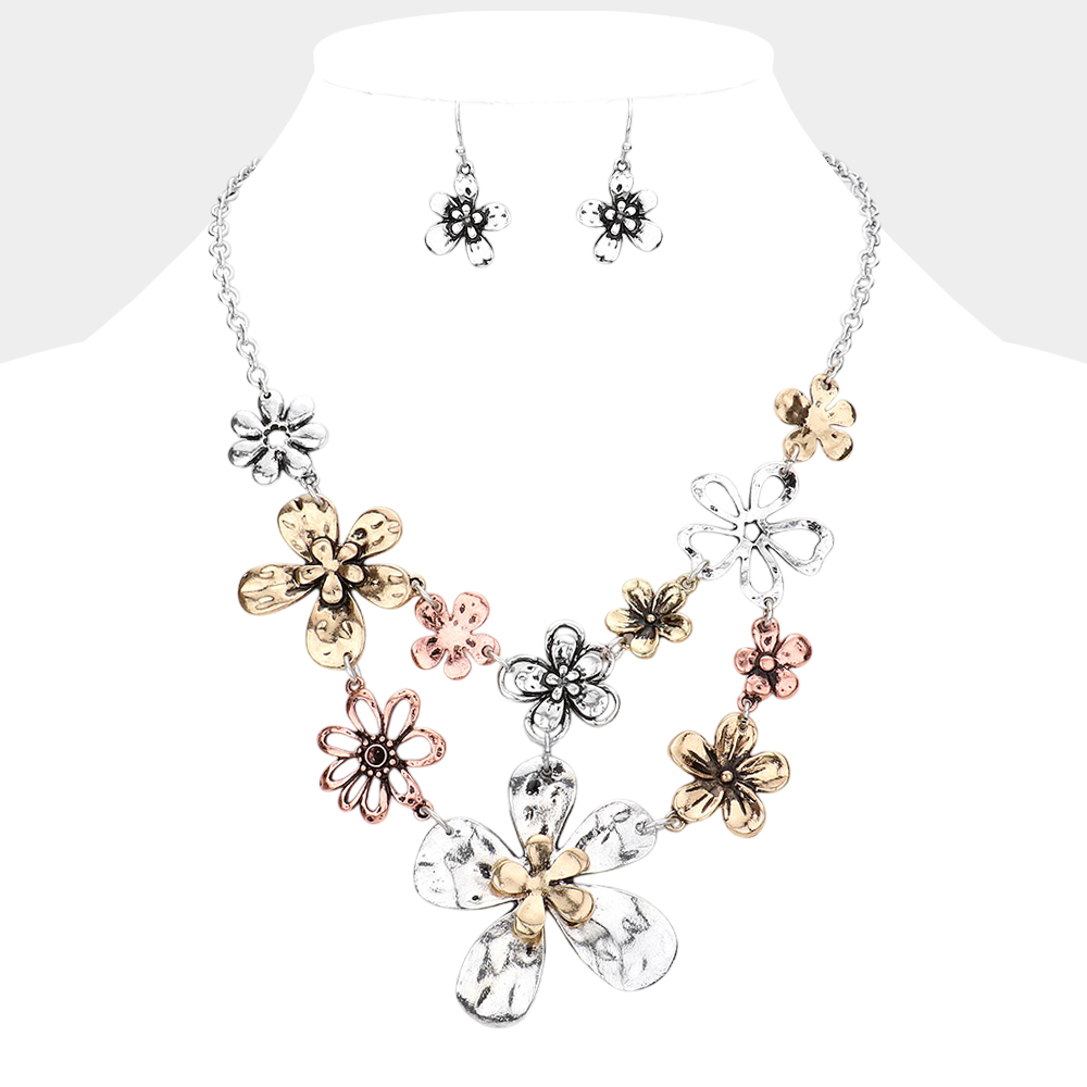 Metal Flower Link Statement Necklace